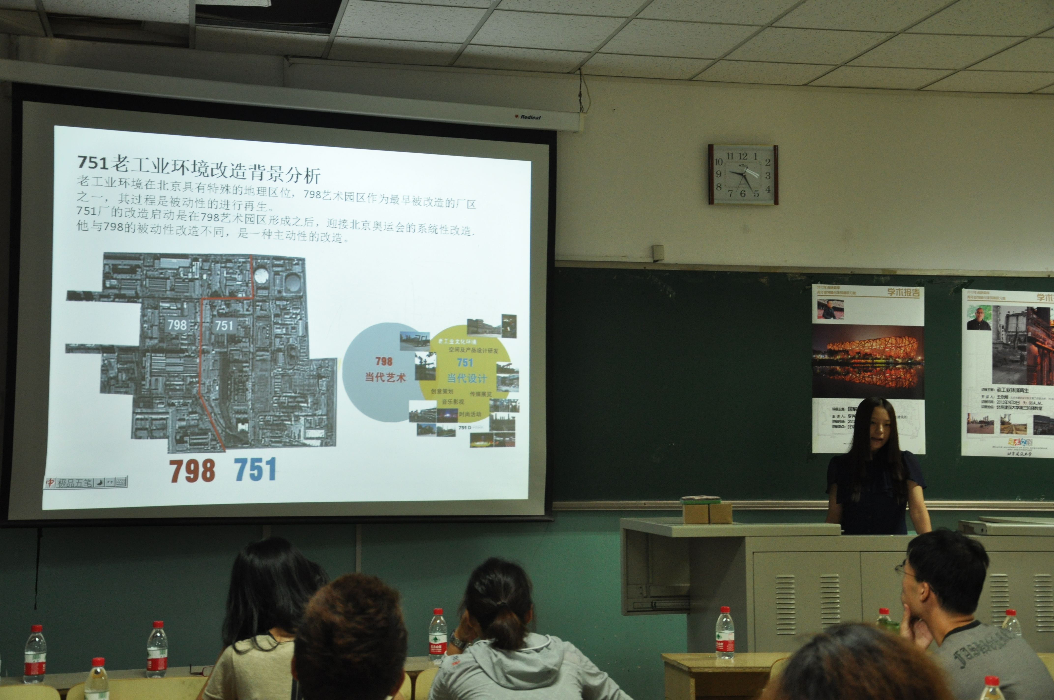 学术讲座五:“老工业环境再生”,主讲人:北京市建筑设计院主题工作室主持人——751总设计师王永刚。讲座就北京旧厂区和厂房的改造、当代艺术区的建设进行了详细的介绍,并结合751的设计案例讲述了项目的组织、建设、运行和管理等方面,使得研习营的师生们对北京老工业厂房和厂区作为艺术家聚落的发展建设情况有了清晰的认识。