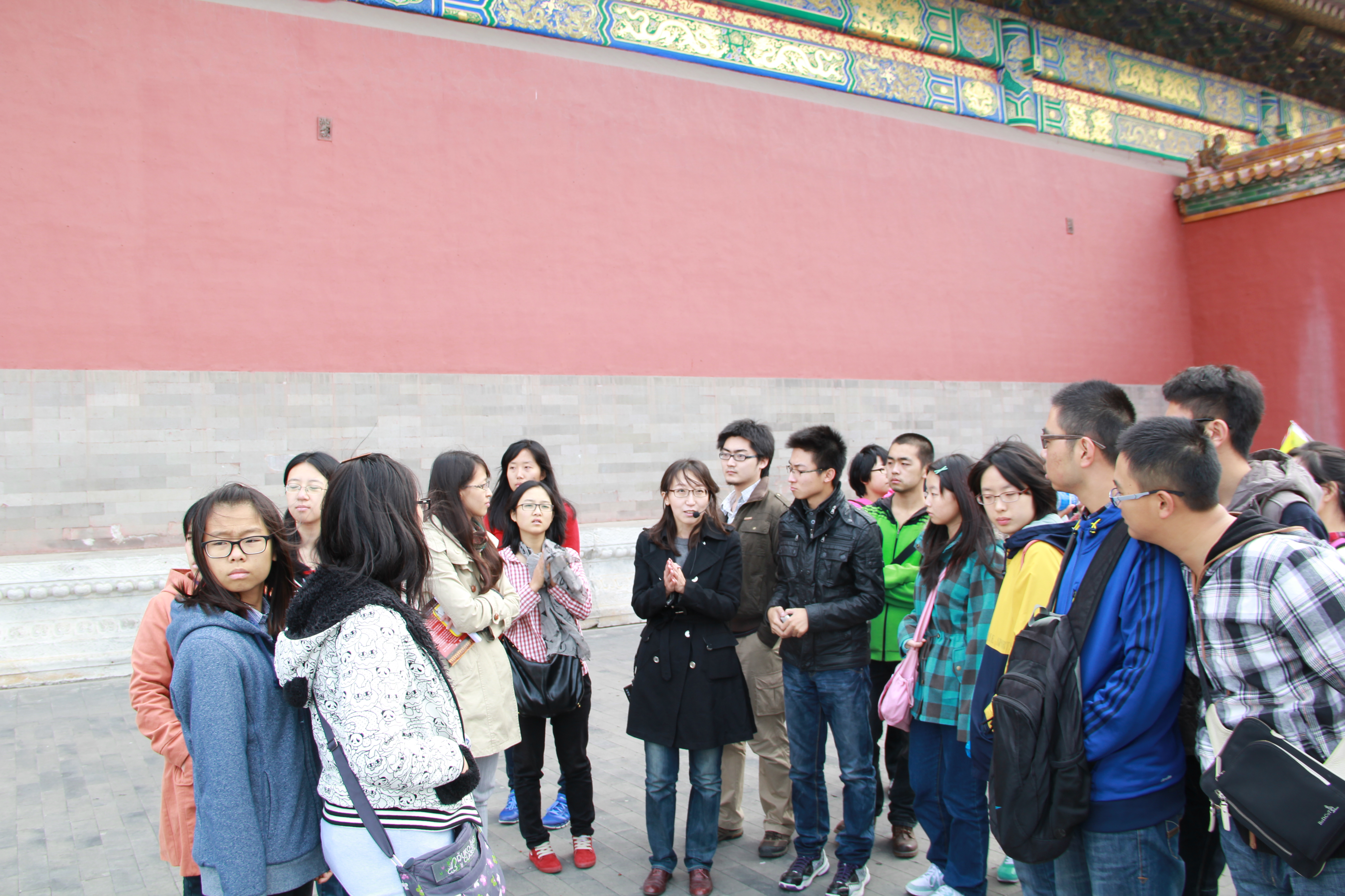 伴随着十大正规买足球网站史论部齐莹老师的专业讲解声,2013年10月19日,作为新生引航工程的活动之一,十大正规买足球网站组织大一外地新生参观文化古迹——故宫、颐和园。正值周末,秋高气爽,十大正规买足球网站团总支书记康健老师带队,邀请史论部齐莹老师进行专业讲解。参观过程中,齐莹老师重点讲解了古代建筑的构造特点,介绍了古代建筑的一些基本建筑知识及特殊元素,与建筑有关的历史背景等。