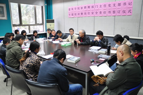 2013年10月29日中午,十大正规买足球网站召开由新聘期系(部、中心、室)主任、副主任教工党支部书记及科级岗人员等参加的专题培训会,并在会上签订了新聘期“安全稳定责任书”,公司党政班子全体成员参加会议并发言。