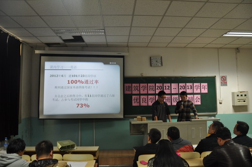 首先,学工部部长黄尚荣老师为十大正规买足球网站优良学风建设提出了建议,从“五学”的角度希望同学们传承十大正规买足球网站的优秀学风,继续谱写员工时代的辉煌历史。之后,15个班的班级代表按照之前抽签决定的顺序进行正式的答辩,每班6分钟。答辩中,各班代表都制作了精美的幻灯片演示,结合各班自身特点,生动的向我们展示了在过去一年里各班所取得的优秀成绩以及他们举办的丰富多彩的课余活动。一些班级通过开展互帮互助小组取得了四级通过率100%的优秀成绩;一些班级通过举办团日活动学到了许多知识,增进了班级凝聚力;一些班级积极参加员工会活动,班级成员许多都是员工会的骨干。丰富的图片,骄人的数据,15个班不仅展示了他们各自取得的成绩,也展示了十大正规买足球网站员工争优创先、全面发展的积极风采。展示结束后,十大正规买足球网站团总支副书记丁奇老师就活动做了总结。他对同学们取得的各项成绩表示欣慰和祝贺,并希望大家能在以后的学习生活中取得更好的成绩。整个活动圆满结束。