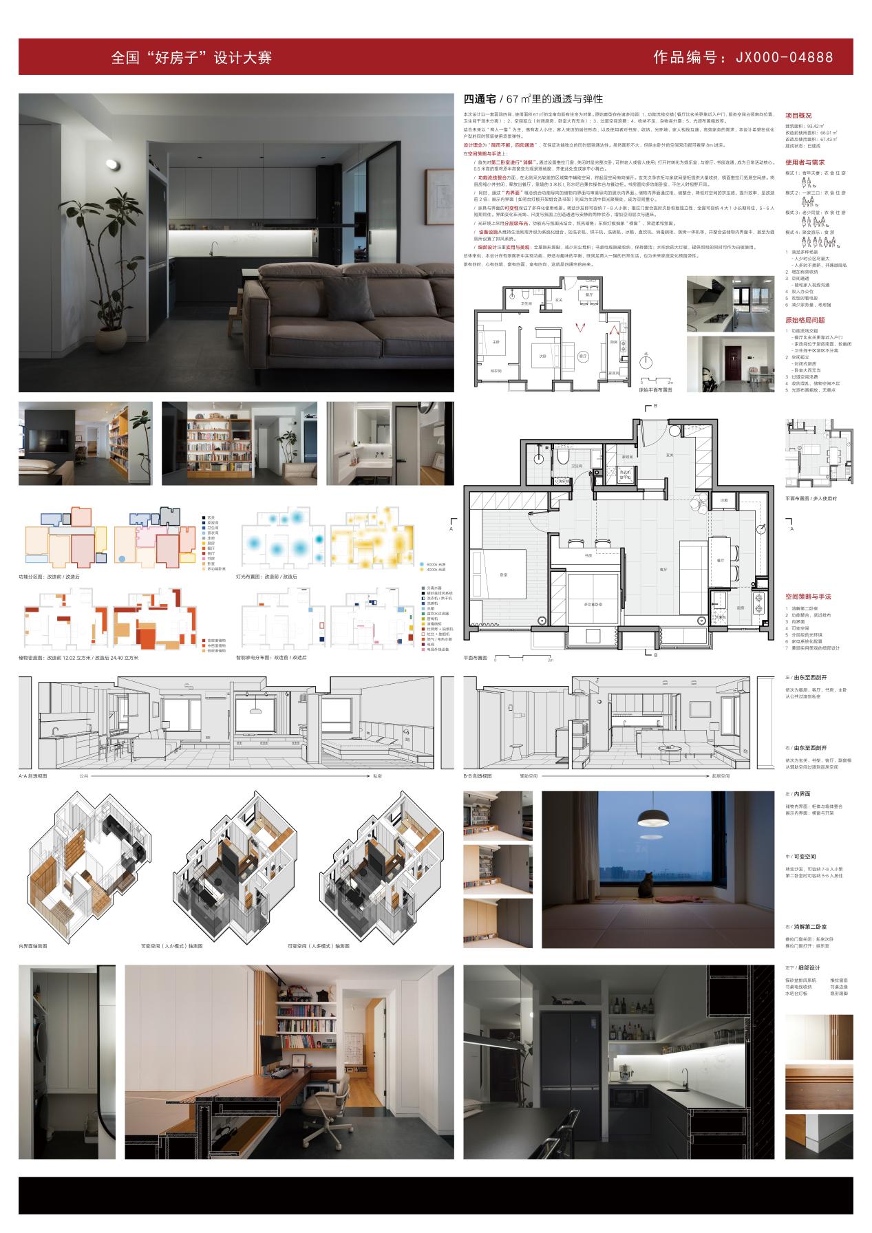 获奖作品:四通宅 / 67㎡里的通透与弹性