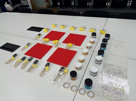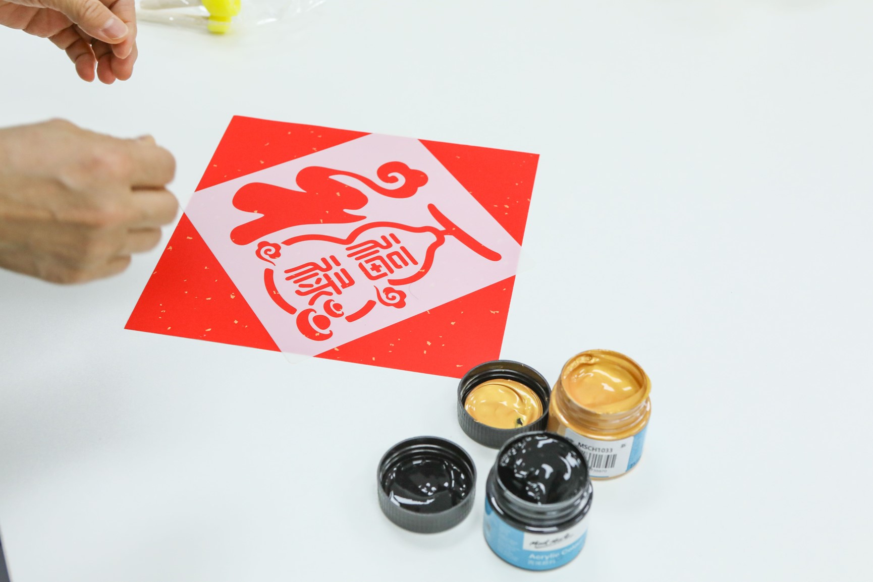 活动尾声的新年拓印画福字环节,将温馨氛围推向高潮。现场摆放着刻有“福”字、马年卡通形象及“柿柿如意”等吉祥纹样的拓版,寿星们手持拓包轻轻拍打,一张张朱红饱满的福字跃然纸上。大家相互展示自己的作品,将对新年的期许与对同窗的祝福融入这一传统技艺之中,让非遗文化的魅力在青春的互动中得以传承。