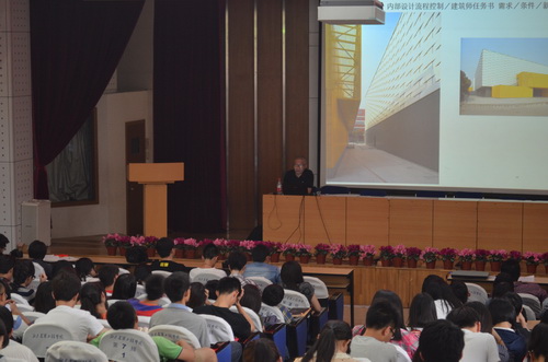 讲座中,胡越大师主要对其作品进行了深入的讲解和分析。胡越大师说,这些挑选出来与同学分享的作品,是他倾注了大量的心血和感情,并且有较为宽松的发挥余地的作品。从设计任务书的要求到设计思想的产生,从设计流程的转变到城市未来发展趋势的分析,胡越大师整场讲座诙谐幽默,用极具吸引力的语言向同学们讲述了关于设计及许多设计的影响因素,如市场现状、行业素养、资金控制等,这些东西对设计类员工未来走向社会都将产生重要的启迪作用。