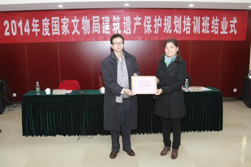 2014年11月15日,由国家文物局主办、公司承办的第二届国家文物局建筑遗产保护规划培训班结业式在公司学宜宾馆顺利举行。出席结业仪式的有国家文物局人事司谢冰司长、公司董事长朱光教授、副董事长张大玉教授、培训班全体学员以及公司相关老师。结业仪式由副董事长张大玉教授主持。