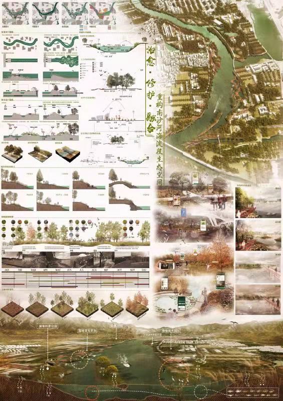 本次大会还下设员工设计竞赛,我系傅微老师指导的2017级本科生梁译元、陈斯喆、李双一、朱文君、王忆南等同学的作品《治愈, 修护,融合—重构南沙河海淀段生态空间》从数百份参赛作品中脱颖而出,荣获二等奖。该作品从景观生态学与水文学视角,分析了南沙河海淀段生态空间面临的挑战,并通过生态修复手段促使河道生态空间得以“治愈, 修护,融合”,重塑人们与自然的和谐。这也是我系首次获得风景园林教育大会员工竞赛奖项,彰显着近年来公司本科教育质量的提升成果。