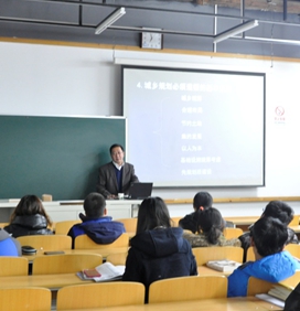 俞滨洋主任做了题为《城乡规划实施与管理》的讲座,讲座深入浅出、图文并茂、幽默风趣。通过对哈尔滨等城市规划与管理实践的介绍以及国外典型城市案例介绍,把城乡实施与管理以灵活的方式展现给听众,对我国目前的规划实施与管理的现状进行了分析与解读,提出城乡规划设计、实施与管理的“三面、五定”的总结,并对规划专业员工的未来发展提出愿景。讲座的听众以规划专业的研究生和高年级的本科生为主。讲座结束后大家踊跃发言提问,气氛热烈。
