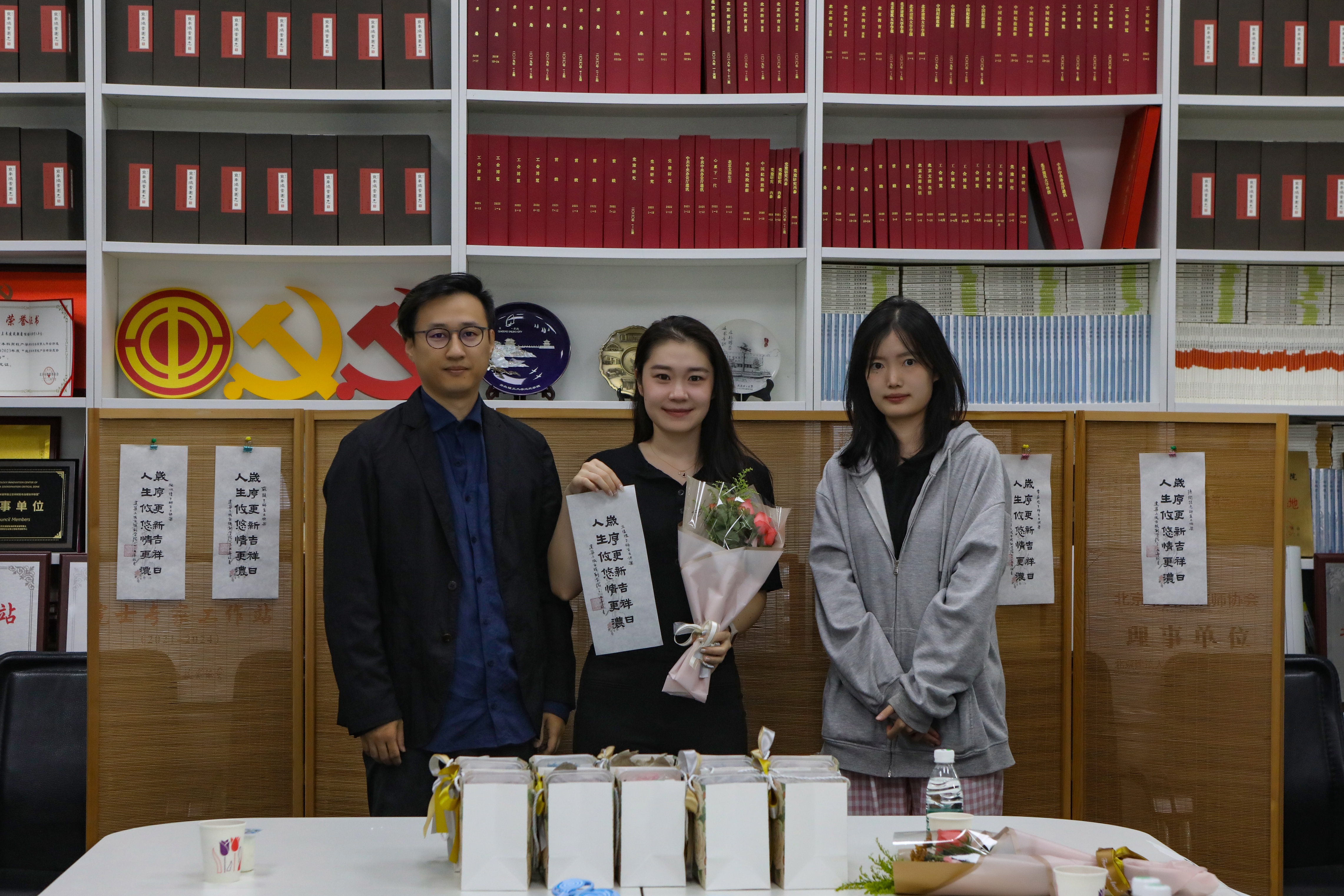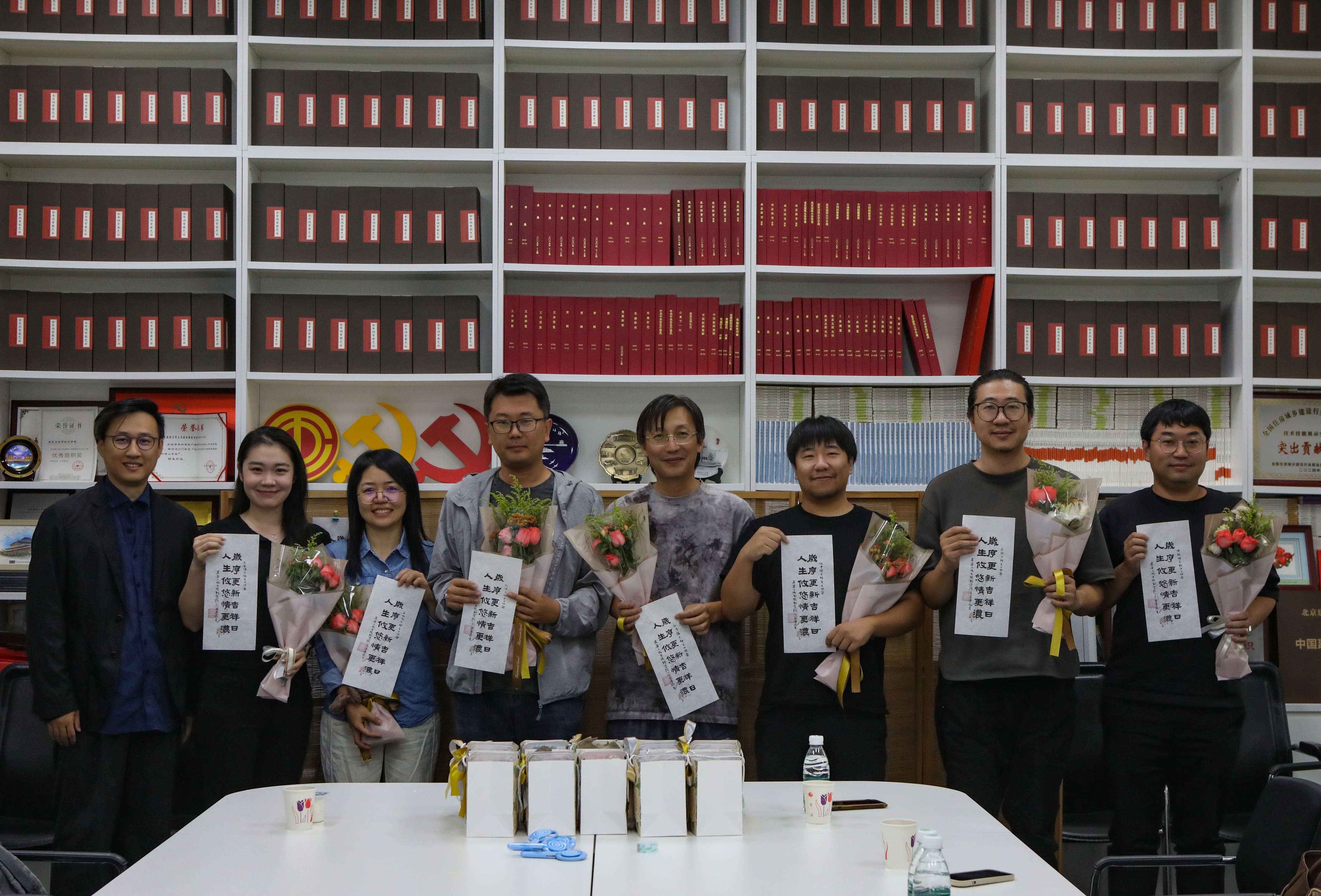 “美的祝福”环节,何立新书记代表公司为寿星老师们送上生日的祝福。吕帅老师为大家送上由丁奇老师倾情书写的福笺。“岁序更新吉祥日,人生悠悠情更浓”的暖心寄语,成为生日会的美好珍藏。适逢“生日月”与“教师月”,员工代表为老师们献上鲜花,感谢老师们的辛勤付出和默默奉献。