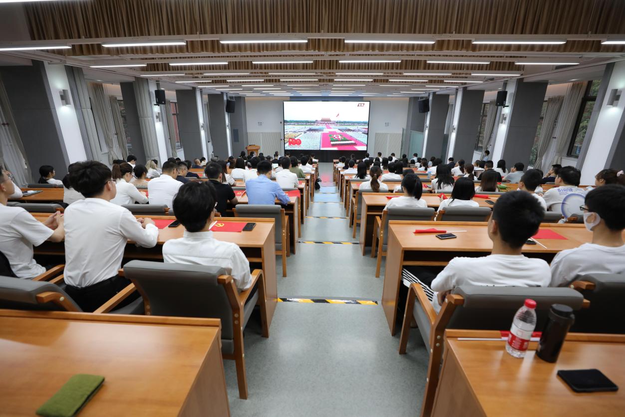 本科生第三党支部 规191刘娅迪:庆典开始,礼炮轰鸣,脚步铿锵,共产党人踏着这样的脚步百折不挠一往无前。100响礼炮昭示中国以雄伟的身姿屹立在世界舞台。习近平总书记在发表重要讲话时说到,中国共产党的成立是开天辟地的大事变,一百年来中国共产党团结带领中国人民的一切奋斗、创造,归结起来就是实现中华民族伟大复兴。中国共产党和中国人民以英勇顽强地奋斗向世界宣告,中华民族站起来了,中华人民任人宰割的时代一去不复返,百年来的伟大成就必将载入人类发展史册!请党放心,强国有我!