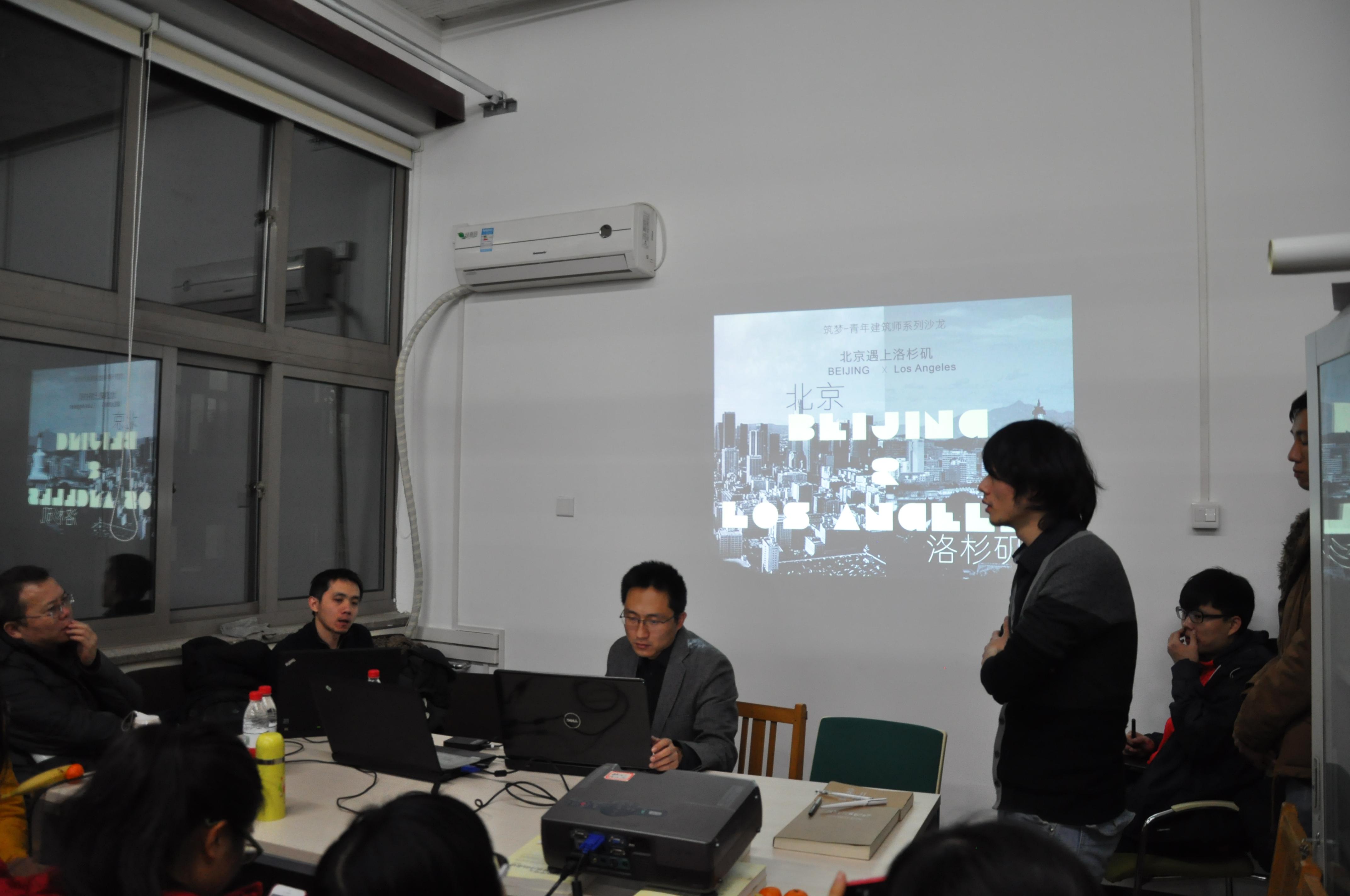 2015年1月19日19:00,十大正规买足球网站青年建筑师系列沙龙在图书馆一楼会议室如期举行,此次沙龙主题为“北京遇上洛杉矶”,由BIAD北京建筑设计研究院马国馨工作室副主任彭勃、美国洛杉矶Zhu Architecture Office(ZAO)主持建筑师朱洪昊主讲,十大正规买足球网站研究生会副主席徐松月主持,三十多名员工参加了沙龙活动。会上,彭勃和朱洪昊两位建筑师首先就自己的基本情况和作品进行了讲解,与大家交流了工作进展。然后,沙龙以讨论问答的形式展开,从北京与洛杉矶两个城市带来的的不同感受和公司文化差异开始谈起,由此展开了对建筑师行业的深入讨论,主要包括对实践项目的经验体会和理论层面的素质修养等方面的内容。最后,两位建筑师还对在场的员工提出了学习建议和就业意见。在场讨论气氛异常活跃,沙龙活动为在校员工提供了一个近距离接触设计师的平台,增进了对设计师实际工作的了解,有利于员工正确树立学习及工作目标。
