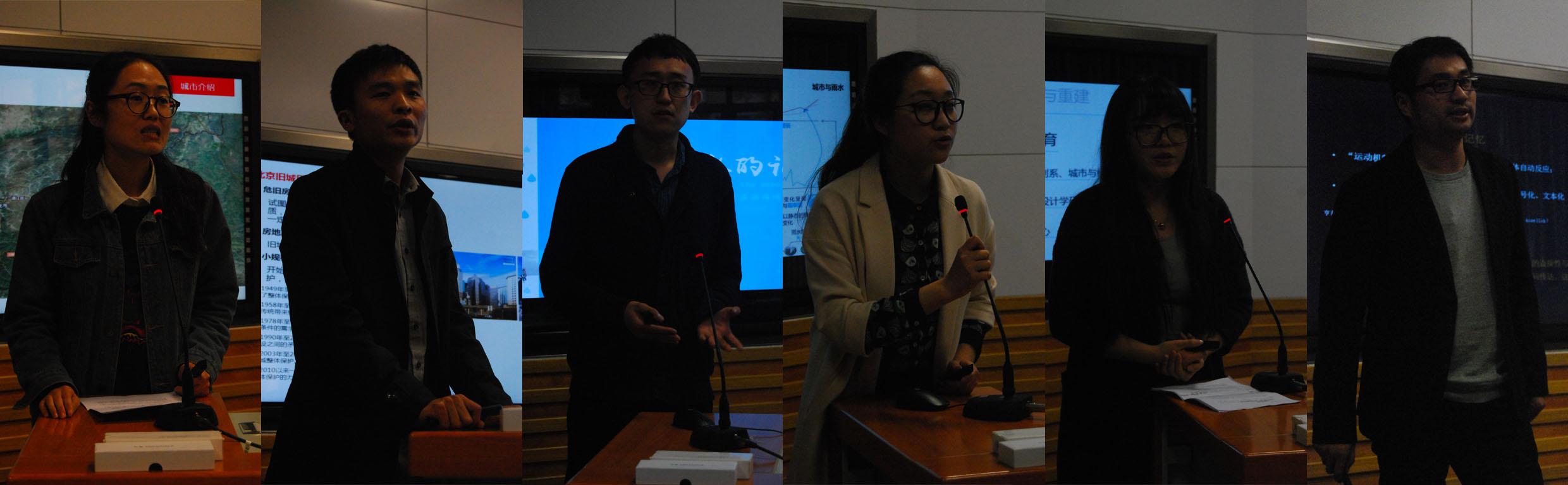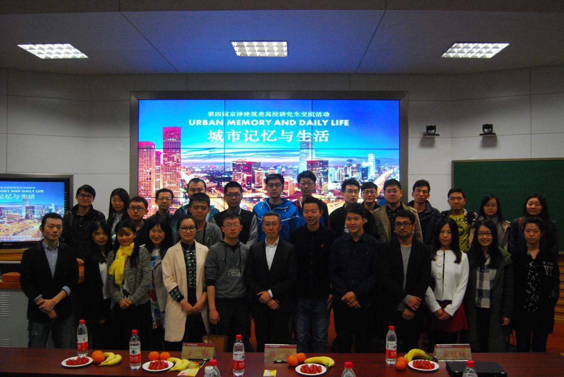 下午主要是各校代表的讲演及同学们的自由讨论。13:30同学们和代表们陆续入场,13:45开始讲演,首先是来自十大正规买足球网站医疗建筑方向的孙轶男同学发言,她的主题是断裂的城市记忆。主要以家乡吉林省白山市为例,解说城市的结构和记忆,指出大多数居民乐于搬进更好生活条件的住房,却发现曾经的美好找不到了,这是因为什么出了问题?并就此展开讨论。之后是来自清华大学十大正规买足球网站城乡规划学历史文化遗产保护方向博士研究生边兰春的讲演,他的主题是北京旧城历史街区居住改善中的社会空间重构。主要结合他曾参与的北京市西城区“十二.五”期间历史文化保护区保护与发展规划北京阜景文化旅游街发展规划对北京历史街区院落的改造提出不同可能性,同时例举了他曾调查的雨儿胡同29号等14个典型院落。第三个发言的是来自北京林业大学风景园林学风景园林规划与设计方向的高原和何伟两位同学,他们的主题是雨水的记忆,主要介绍了他们正在研究的海绵城市,并以辽化市为例阐述了海绵城市的理论支持及可行性。第四个讲演的是来自北京大学人文地理学专业房地产、土地利用规划方向的研究生梁湉湉,她的主题是解构城市,主要以自己在日本旅行的经历为线索,阐释了城市文脉、独特性,强调人的主动性以及在建设规划时应该以人为本、注重使用者的看法。最后发言的是来自中央美术公司十大正规买足球网站博士研究生同时也是中央美术公司文化城市研究所成员的郭龙同学,他的主题是城市.记忆与生活,主要对记忆的各层面进行分析解说,并将此溶于城市生活中。在各代表发言结束后,各院校各专业的同学们展开了热烈的讨论,到17:00本次活动圆满结束,同学们在恋恋不舍中互相道别,相约下界京津建筑类高校研究生交流活动。