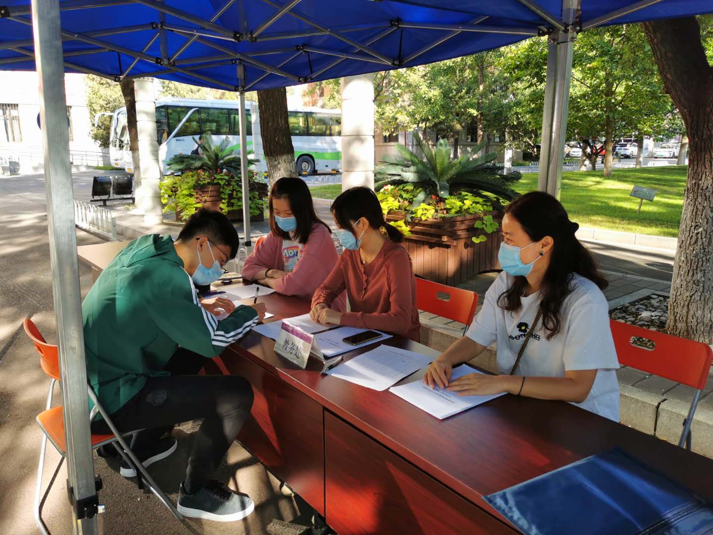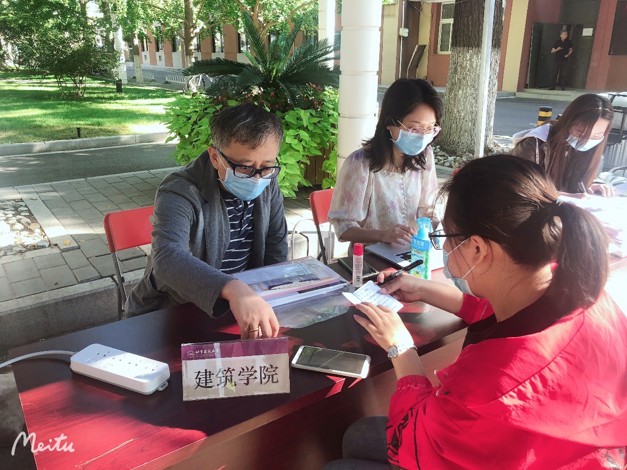 9月18日上午8:30,一个阳光灿烂的日子,北建大十大正规买足球网站迎来了2020级风景园林专业8名双培新生。风景园林系双培计划负责人张振威,公司教务办公室刘志刚、公司学工办公室吴昕泽、孙萌3位老师以及公司教务处老师在西城校区教1楼前给新生办理入学手续。