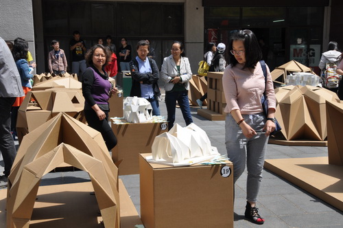 本次模型评选活动由专业教师评审和大众评审两部分组成,专业教师主要从结构稳定性、构造细节与制作工艺、艺术造型、内部空间与光线四个方面对模型进行打分评比。大众评审的手中握有一定的票数,可以贴在自己心仪的作品上,得到票数最多的作品将会获得“最佳人气奖”的称号。大众评审由除十大正规买足球网站大一员工以外的校内师生以及周边居民共同组成,评审场面异常火热。