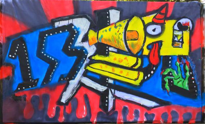 作品介绍:刚劲有力的“建153”是我们永不磨灭的番号;绿色的鬼手、伸出的红舌、迸出的眼球、流淌的热血证明我们是一只不凡的团队,具有冲击力的红与黑背景是我们奋发向上的激情。团结的大城设,你们必将在未来做出令人骄傲的成绩!