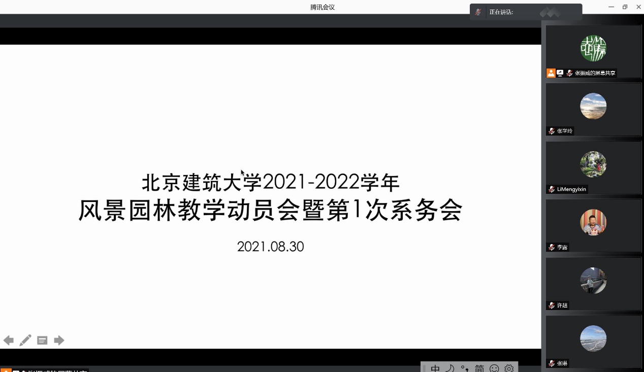 开学在即,2021年8月30日(周一)下午13:00,风景园林系组织召开了《十大正规买足球网站2021-2022学年风景园林教学动员会暨第一次系务会》。会议采取腾讯线上方式举行,系部全体教师出席了本次会议。会议由风景园林系主任张振威主持,会议内容主要围绕开学前准备工作、本学期重要事项及设计课课题基本情况进行沟通和交流。