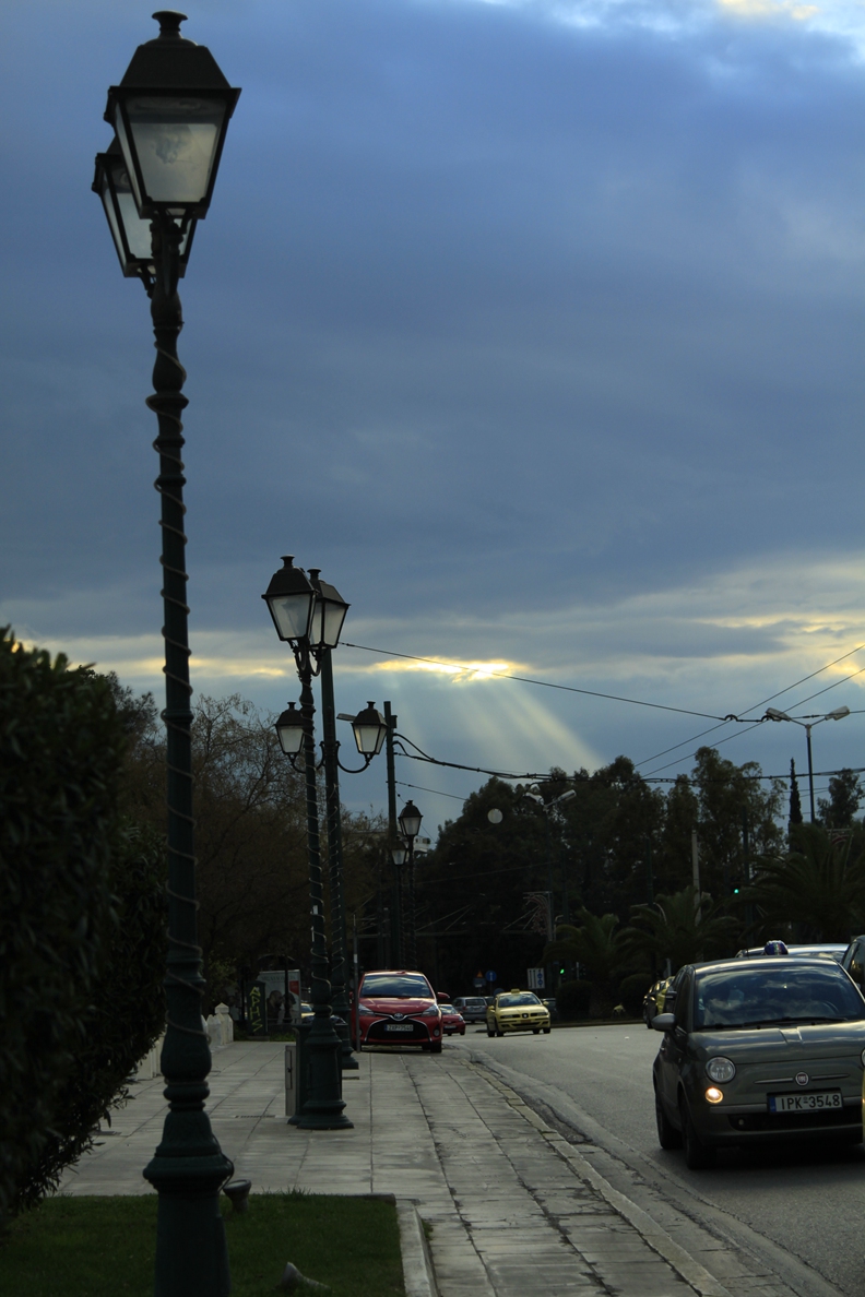 初临雅典,明显感到凉意,薄云笼罩在雅典上空,间隙之间可以看见地中海典型的蓝色天空。希腊的阳光果然名不虚传每年会有大批的北欧游客夏天来到爱琴海沿岸享受阳光。不同于北京夏日阳光的灼热感,希腊的阳光强度更加适中,“沐浴”一词更能形容这里的阳光给人带来的感受。