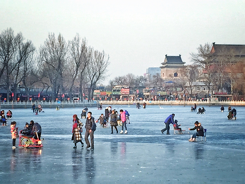 虽然白塔寺我没怎么来过,但是什刹海的冰场基本上每年我都来滑冰。在冰面上出溜着,看着滑倒的人和天上的鸽子,还是挺有意思的。