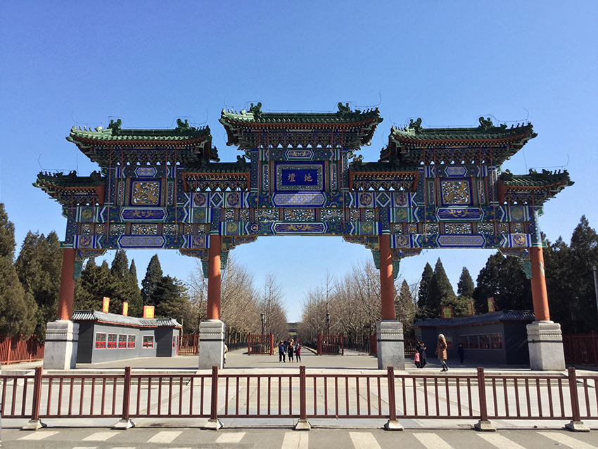 地坛在安外大街,是明清两代皇帝祭地的地方。地坛西门有个牌楼,是进到坛门的必经之路。现在上面写的是地坛二字,不过这个是后来重建起来的。明代的时候牌楼上写的是泰折街,西门的大道就叫泰折街。《礼记》里说的是“瘗埋於泰折,祭地也。”意思是在泰折埋掉祭品来祭地。后来清代的时候,雍正又把这改名叫广厚街,取《礼记》中“今夫地,一撮土之多,及其广厚,载华岳而不重,振河海而不泄,万物载焉。”意思是地的广厚,可以承载高山容纳江海。广厚街这座牌楼,后来又被乾隆改建成了一个三间四柱七楼的牌楼,还在周围围上了木栅栏,整个牌楼就成了一座标志性建筑物。