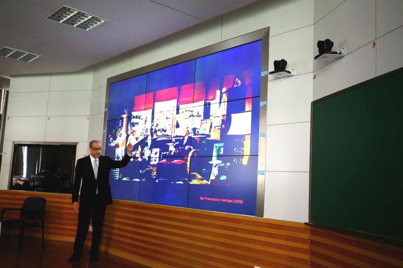 座谈后,罗伊教授在公司三阶举行了一场主题为“电影中的城市”的讲座,并由钱睿进行现场翻译。罗伊教授将他在密歇根大学城市设计研究生项目开设的课程——以电影为教学媒介的设计课,与大家进行了分享和交流。罗伊教授之所以在设计课中播放电影,是因为他认为电影的叙事和表达方式能够帮助城市设计的初学者很好地感知和理解城市形态与社会生活的存在状态与交叠方式,而这正是城市设计师在进行创作时应着重关注的部分;此外,镜头捕捉城市的方式也是十分多样的,从鸟瞰一座城市的某片区域微观到某一幢建筑或某一条小巷,这些恰好是城市设计师进行实践的范围和对象。