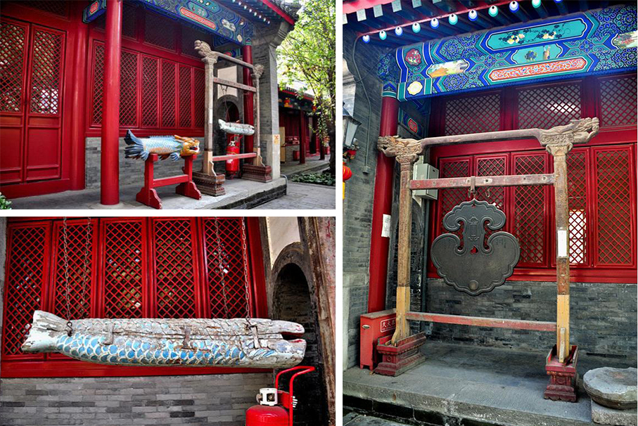 山门内为天王殿,供有明代的铜铸弥勒佛像和四大天王像,系从拈花寺内移来。殿前有数块铭碑,东西两侧建有钟楼和鼓楼。据说古人以钟、鼓为号,即早晨先击钟,以鼓应之;晚上先击鼓,以钟应之,即所谓“晨钟暮鼓”。不过今天法源寺内的钟楼已只是历史的见证,失去了先日之功能,僧人活动多以打板为号了。