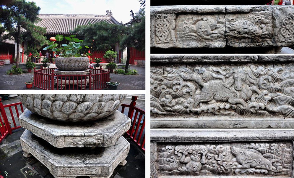 第五进院落的主殿是大悲坛,又称观音殿,面阔五间,殿后接抱厦一间。该殿供奉的都是观音像,其形态各异,共有7尊。