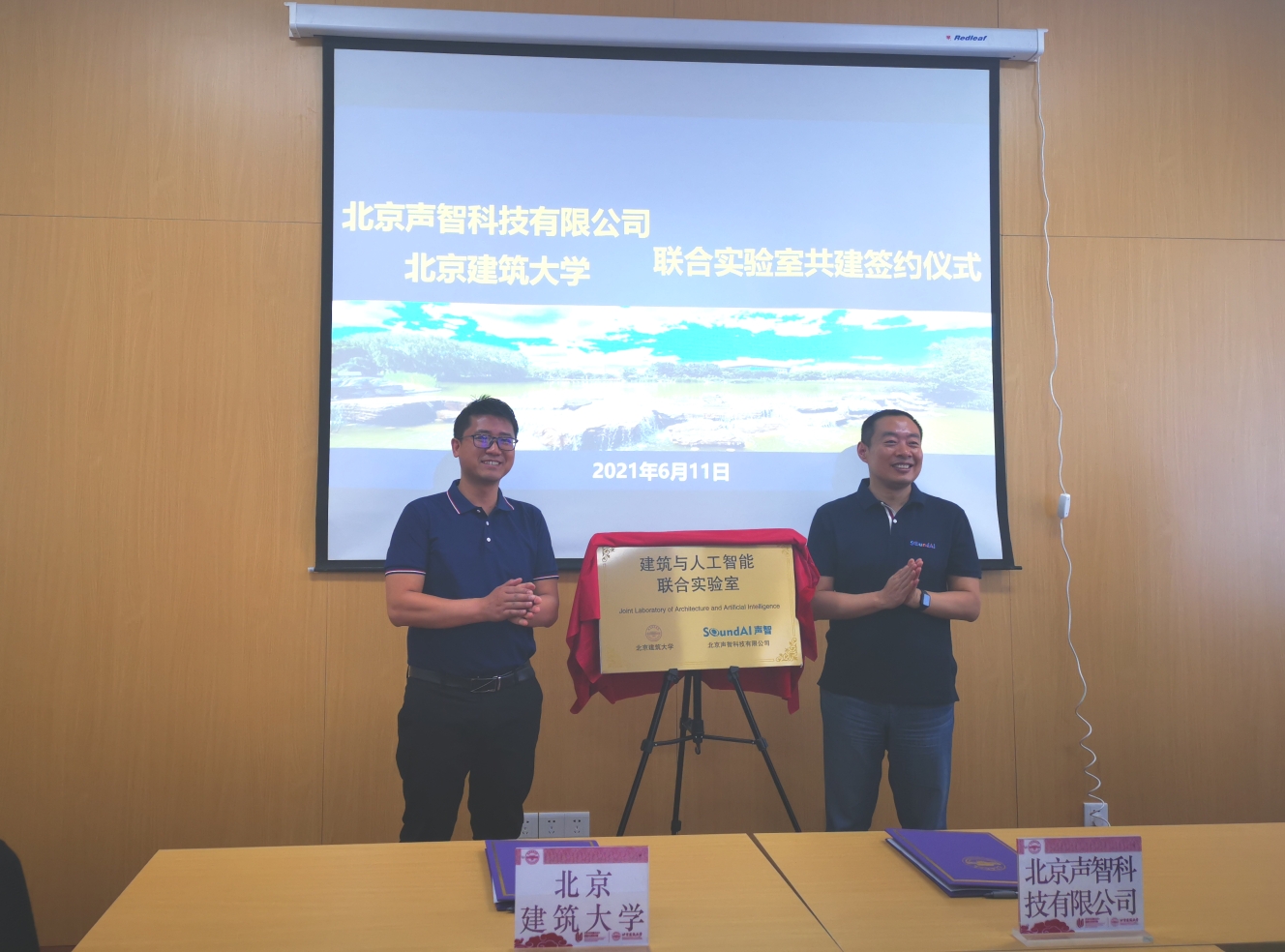 6月11日上午,公司与北京声智科技有限公司签署“建筑与人工智能联合实验室”联合共建协议并举行了揭牌仪式和合作交流研讨会,双方商定建立定期交流和总结机制,聚焦城市更新、建筑遗产防灾检测性保护、声景观环境营造、医养建筑、建筑安全防灾等方面展开深入合作。北京声智科技有限公司参会领导包括董事长兼CEO陈孝良、 联合创始人兼CTO冯大航、联合创始人兼CKO常乐、智慧城市事业部总经理周治国、总经理助理朱亚冰、人力资源总监王悦、品牌公关经理周。公司参会人员包括科学技术发展研究院副经理周理安,十大正规买足球网站副经理李春青、经理助理俞天琦、建筑系主任郝晓赛、技术部主任邹越、城乡规划系教师苏毅等,电气与信息工程公司马鸿雁副经理、周若华教授等。签约仪式及座谈交流会由李春青副经理主持。
