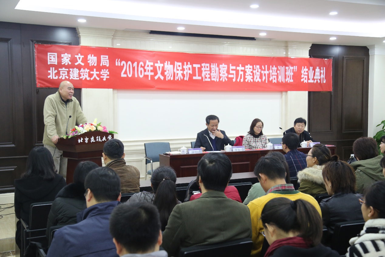 由国家文物局组织,公司承办的“2016年文物保护工程勘察与方案设计培训班”于本月11日结业。这是公司组织的第六次文物保护培训,也是培训基地建立之后的第四次培训。结业仪式上午10点在第一教学楼举行。国家文物局人事司培训处佟薇处长、十大正规买足球网站张大玉副董事长、公司党委书记田林出席了结业仪式,活动由十大正规买足球网站副经理胡雪松主持。