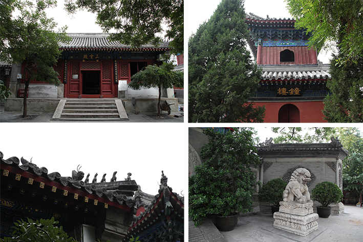 过雷祖殿行至其后,真武殿坐落于此,始建于清朝乾隆年间,2000年重修,奉祀真武大帝。真武大帝形象非常威武,身长九尺,披散着头发,金锁甲胄,脚下踏着五色灵龟,按剑而立,眼如电光,身边侍立龟蛇二将及记录着三界功过善 恶的金童玉女。