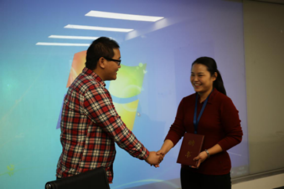 交流环节结束后,公司辅导员王国亭老师首先代表公司领导对华通国际长久以来的支持表示感谢;并代表十大正规买足球网站就业联盟为华通国际人力资源部经理常桂花颁发聘书,聘请常经理为十大正规买足球网站就业联盟“就业指导、生涯规划”校外导师。“就业指导、生涯规划”校外导师的聘任,将为建院学子的成长成才和就业联盟的发展加油助力。