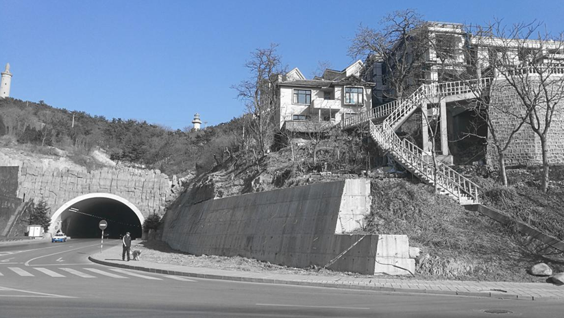 依山势而建的别墅群,马路的另一头就是海边的军港