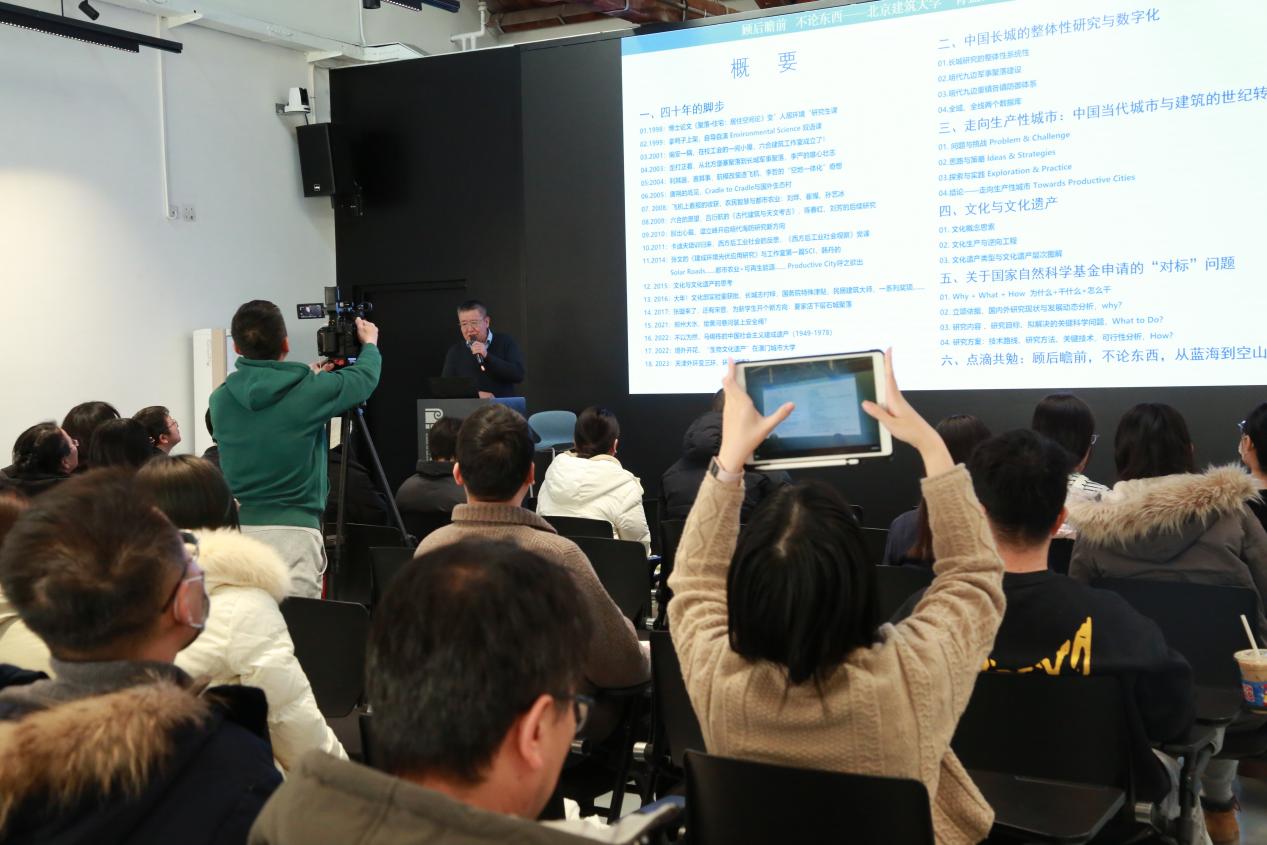 张玉坤教授回顾了自上世纪九十年代至今的研究轨迹。从“六合建筑工作室”的成立与发展,再到近年来在长城研究、生产性城市、文化遗产等方向的持续深耕,全面展示了科研生涯的演变情况。