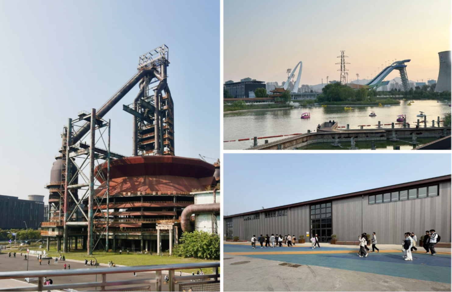 在参观过程中,同学们以“看见过去——工业遗产与城市记忆”、“从工厂到街区——空间的开放性转变”、“现在这里在干嘛——建筑功能与人群活动的关联性”、“环境变好了吗——生态修复与公共空间营造”等为切入点,结合现场空间体验展开记录、分析与思考。通过以问题为导向的实践方式,同学们由被动参观转向主动观察,在行走与感知中逐步建立对工业遗产更新的理解框架。在实践最后,团队组织现场交流讨论,分享调研体会,并针对同学们在观察过程中产生的问题进行集中解答。