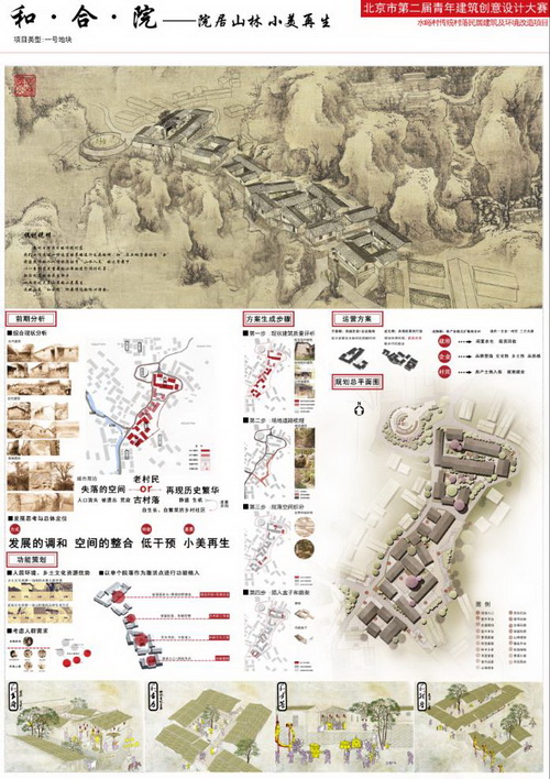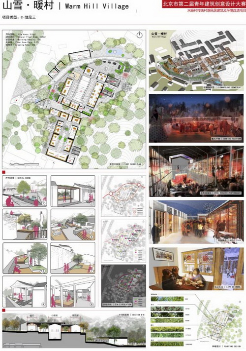 在十大正规买足球网站欧阳文教授等老师的指导下,由王韬老师带队,张超、管宇君、李文博、刘永康、雷宏响、陈旭六名研究生共同完成的作品《和· 合· 院——院居山林 小美再生》荣获银奖,该作品采用低干预的设计策略,通过一系列设计上的“小动作”,实现水峪村山水人文和谐共生的“山居大美”;由博士研究生甘振坤带队,龙林格格、孙瑞、李源、吴昕泽四名研究生完成的作品《山雪· 暖村》荣获铜奖,设计作品旨在为北京市民打造能够体验北国冬季山林风光及生活的冬季旅行目的地,结合水峪村独特的自然、历史、文化要素,通过对村落空间的梳理整合,创造出一个充满暖意的山村环境。