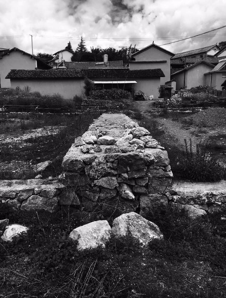 丽江的三个镇子之间都是长长的公路连接,我们决定骑行去到开发程度最低的白沙古镇瞧瞧,结果不尽人意我便不再赘述,远不如路上带给我的感动。通往沙溪的公路很漫长,很空旷,一条路,两边尽是山林,偶尔经过的也只是不知道用处的路边小屋,为什么在一篇建行记里写一个几乎没有建筑的地方?我惊讶地发现对建筑有着无限憧憬的我此刻竟觉得这样一个没有建筑的地方才是最完美最向往的存在。大概让建筑存在于好像它本来就该在的地方才是最正确的事儿吧。骑行途中不知从哪儿跑来一条土狗,一直跟在我们身后,为了它不那么费劲我们也会下来走上一程,还给它取了个名字,“作家韩寒的闺女名字叫小野,特诗意是吧,咱就叫他小野狗吧”······