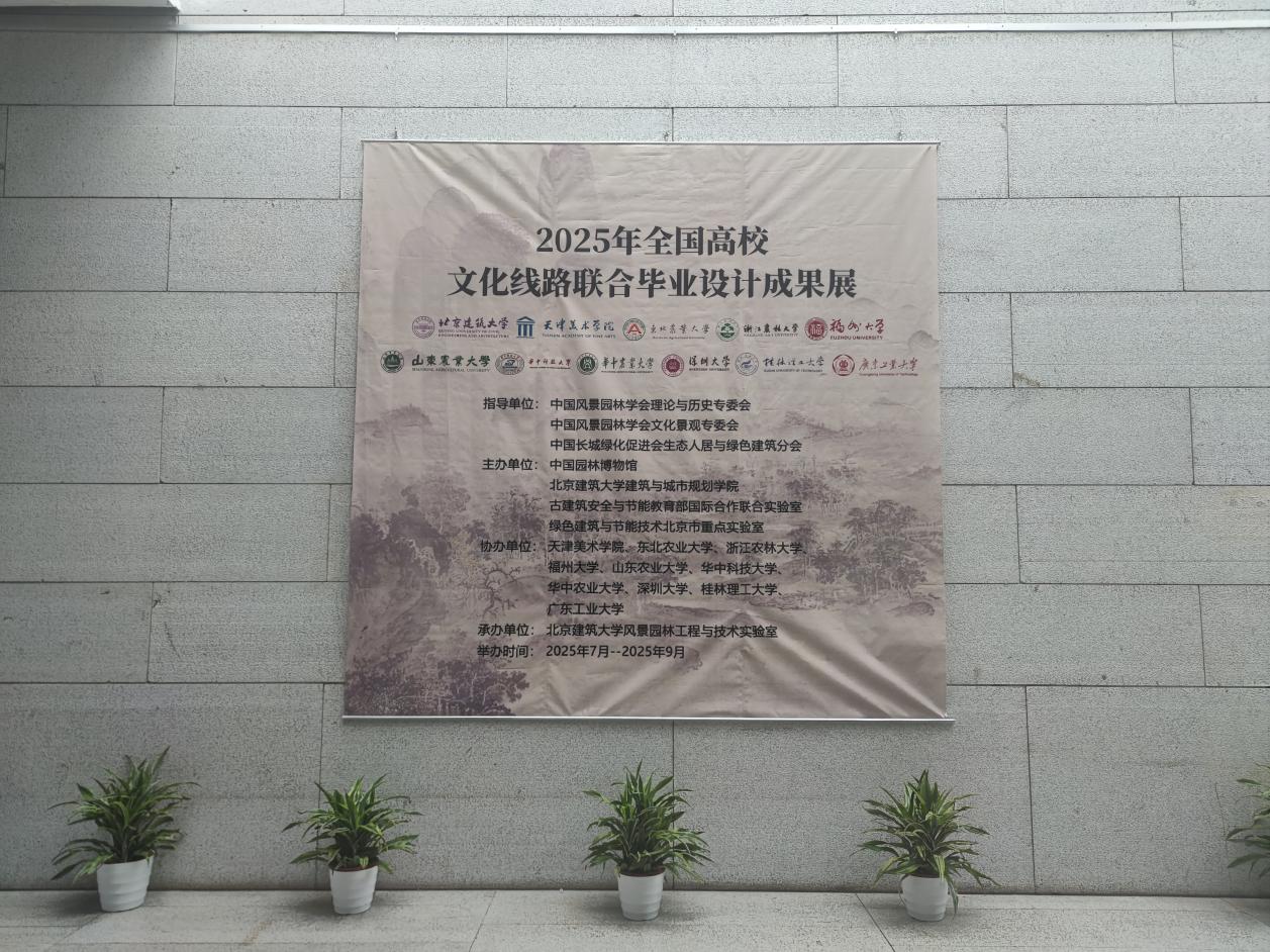 2025年7月,由中国风景园林学会理论与历史专委会、中国风景园林学会文化景观专委会、中国长城绿化促进会生态人居与绿色建筑分会指导,十大正规买足球网站、中国园林博物馆、古建筑安全与节能教育部国际合作联合实验室、绿色建筑与节能技术北京市重点实验室联合主办,全国11所高校协办的“2025年全国高校文化线路联合毕业设计成果展”在中国园林博物馆正式开幕。展览系统展示了全国11所高校的毕业设计成果,以“文化线路”为核心,从历史脉络梳理、景观特征挖掘到保护规划设计,全面展现青年学子对文化线路保护与发展的创新思考。