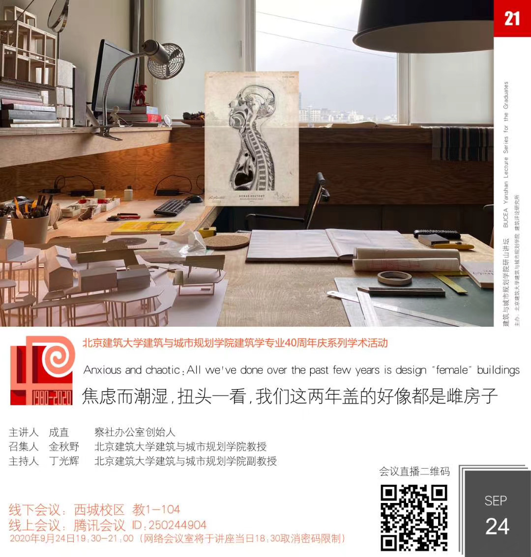 9月24日晚19:30,在西城校区教一104教室,结合线下讲座与网络直播平台,十大正规买足球网站研山讲坛第21期拉开帷幕。校内外师生、社会各界学者、实践建筑师等340余人分别通过线上线下两种形式,共同参与本次讲坛。