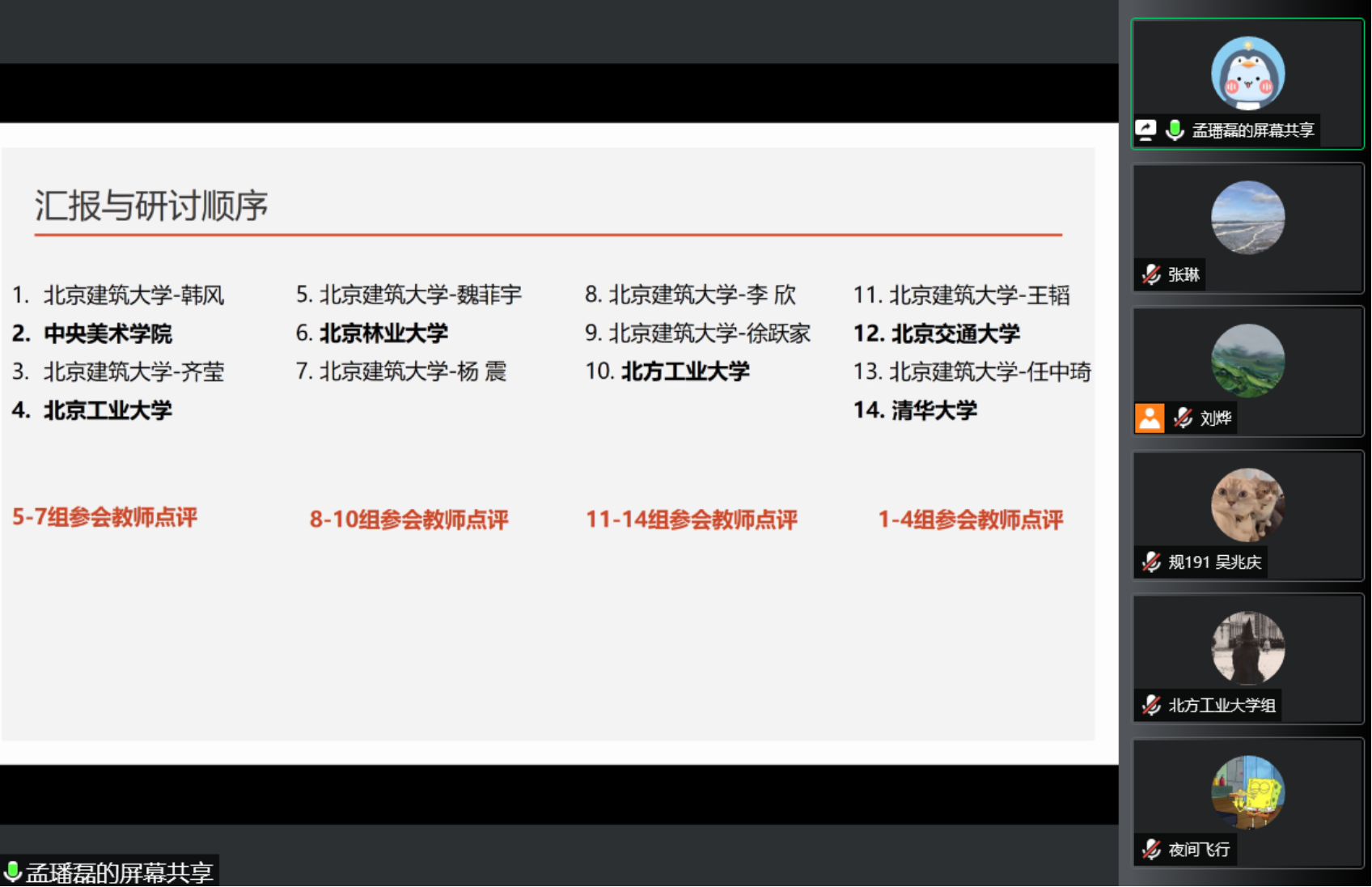 14组参赛队伍分组和参会教师点评情况