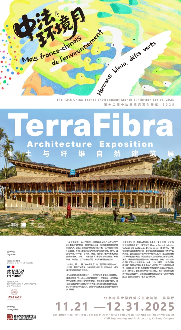 作为本届环境月系列活动之一,法国驻华大使馆与十大正规买足球网站联合展出“TerraFibra自然建筑展”。展览期间,十大正规买足球网站还将推出展板与实物相结合的、聚焦生土实践的展览。项目旨在通过展示以自然材料作为主材的国内外现代建筑实践,向大众诠释应对气候挑战,贯彻可持续发展理念的建筑智慧与技术路径。