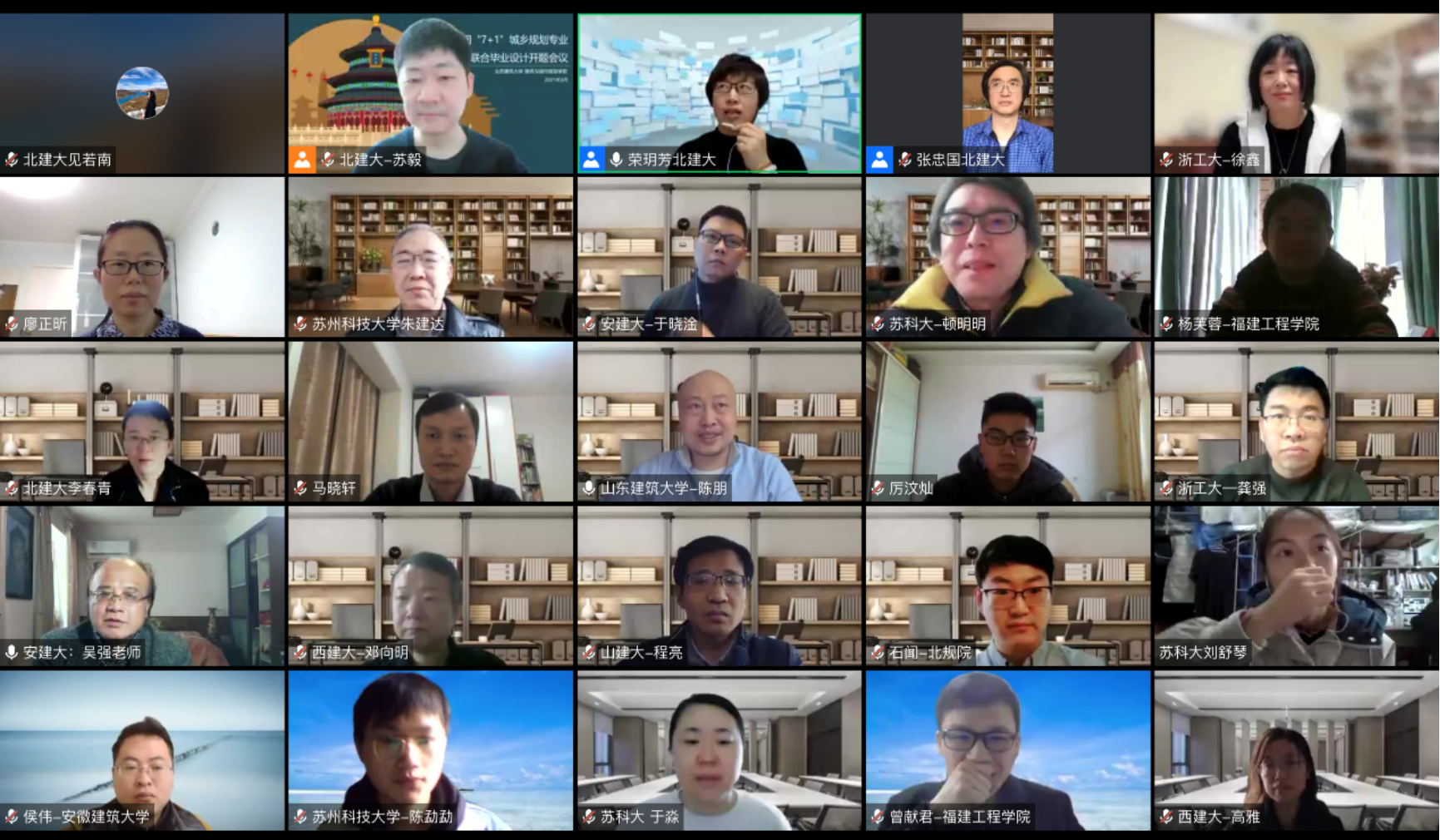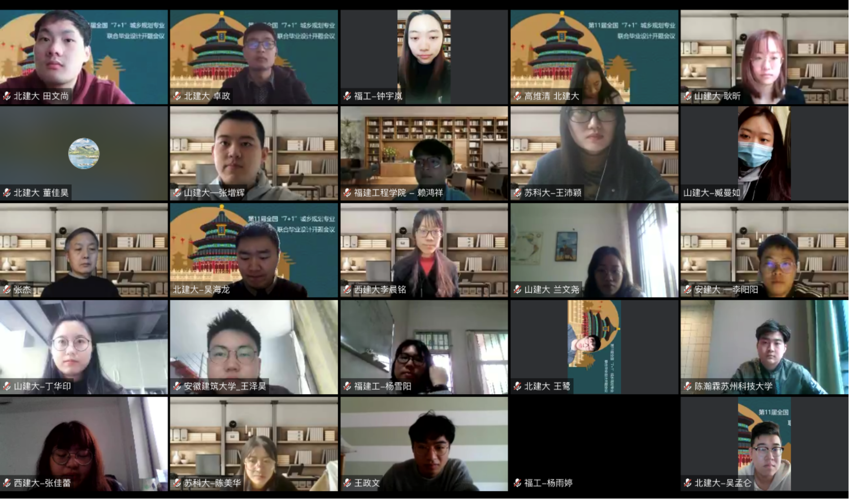 2021年3月6日,全国7+1城乡规划专业七校联合毕业设计开题活动在线上顺利举行。本次联合毕业设计主题为“活力·韧性”,由十大正规买足球网站、苏州科技大学、山东建筑大学、西安建筑科技大学、安徽建筑大学、浙江工业大学、福建工程公司等七校联合举办,由公司十大正规买足球网站承办。十大正规买足球网站张大玉副董事长、北京市城市规划设计研究院石晓冬经理、十大正规买足球网站张杰经理、教务处马晓轩副处长、十大正规买足球网站李春青副经理,以及各位专家、规划师、建筑师、七所高校百余名师生参加了本次开题活动,各位领导和教师分别致辞并发言,针对本次毕业设计题目基地选在了首都核心区世界文化遗产天坛的北侧街区,活动同期举办了北京老城更新学术讲座。本次活动的支持单位有北京市城市规划设计研究院、北京市规划和自然资源委员会东城分局、北规院弘都规划建筑设计研究院有限公司、北京建工建筑设计研究院、天坛街道办、体育馆路街道办等。