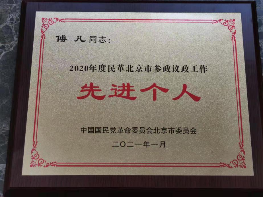 2021年1月9日,中国国民党革命委员会北京市第十五届委员会第六次全体会议在北京市民主党派人民团体办公楼召开。民革中央副主席、北京市副市长、民革北京市委主委王红等领导及市委委员参加会议。会议表彰了参政议政先进个人35人,公司十大正规买足球网站教授傅凡作为代表到场接受了表彰。