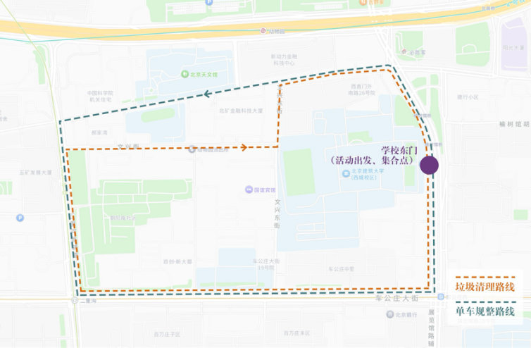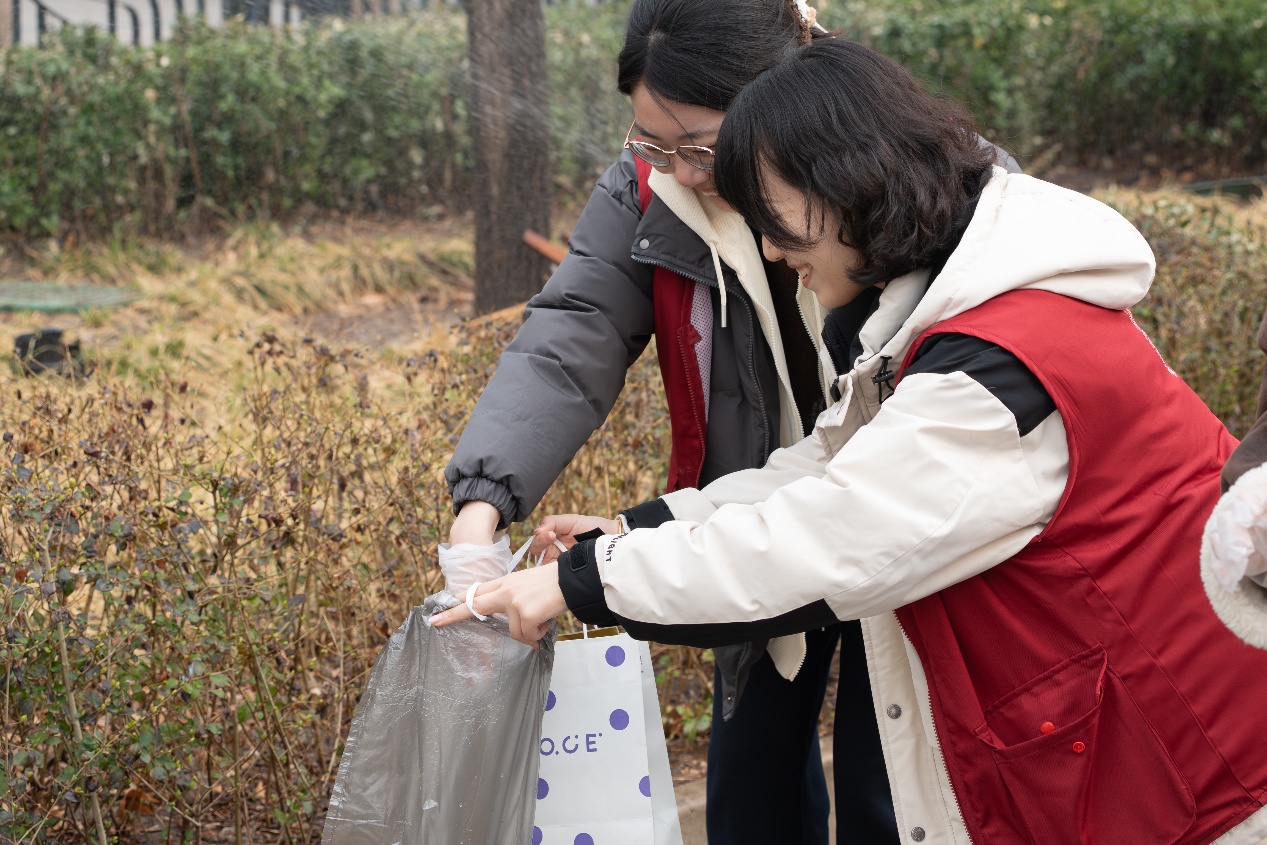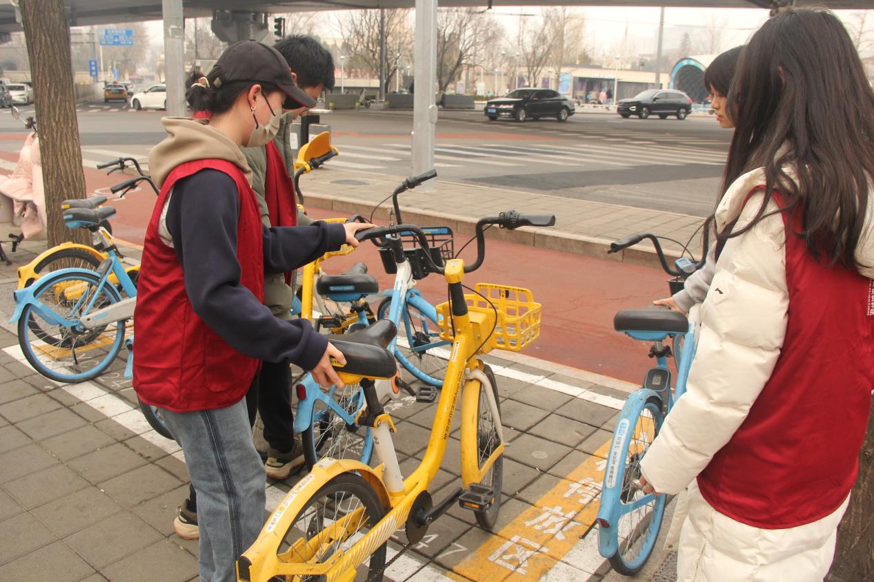 一条路线,两份责任——志愿服务走进社区“最后一公里” 活动当天下午3点,志愿者们在正门集结完毕,统一身着志愿马甲,分组领取物料后分头出发。垃圾清理组的志愿者们手持垃圾夹、垃圾袋,沿着规划路线清理路面、绿化带、站台周边的塑料瓶、烟头、纸屑等生活垃圾,并进行分类收集;单车规整组则深入公交站点与地铁口,将散乱停放的共享单车一一归位,清理占道车辆,确保盲道与消防通道畅通无阻。两条路线虽分工不同,却共同承载着“服务社区、传播文明”的使命。