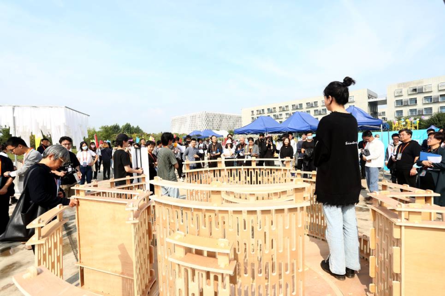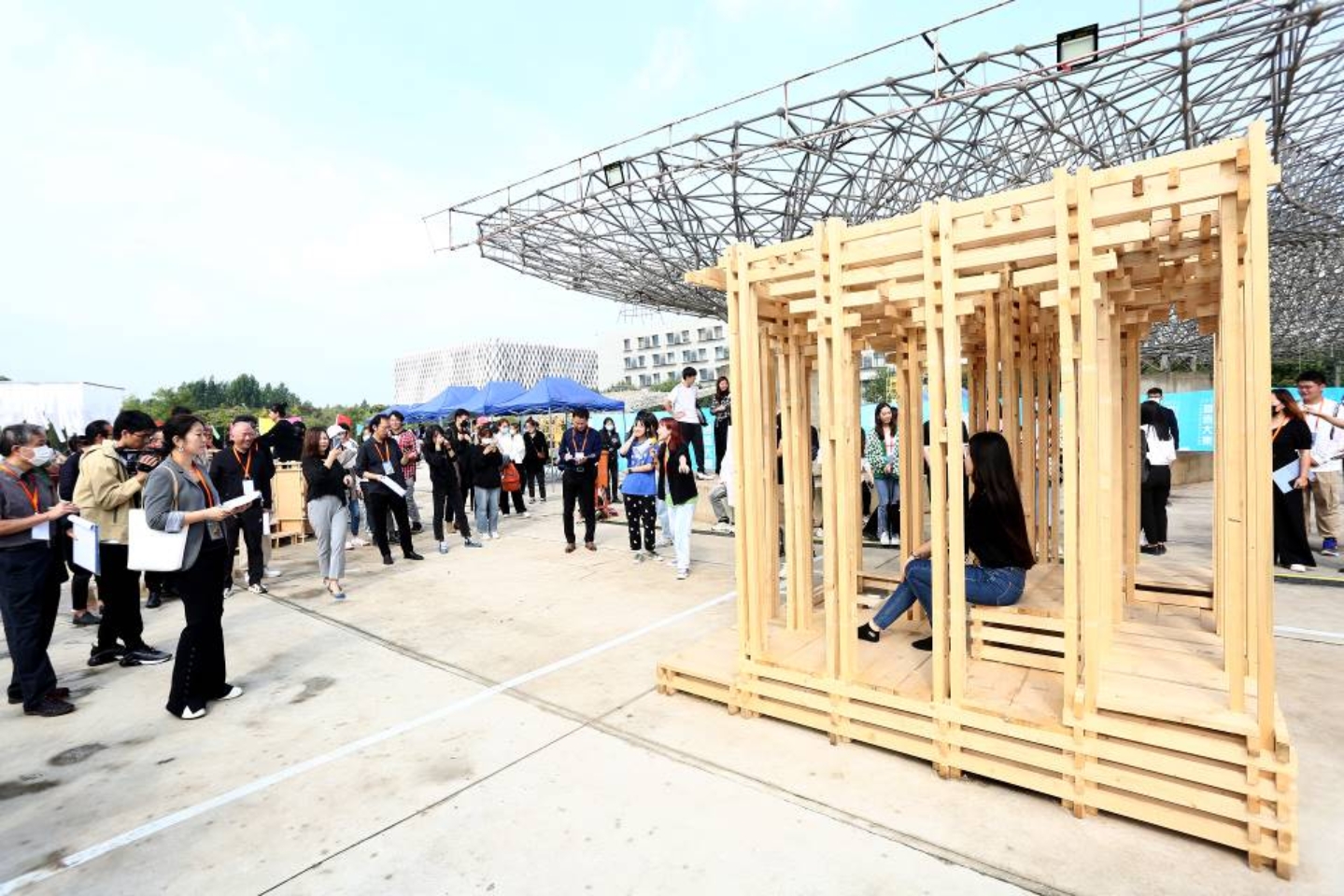 2021年9月25日,由中国建筑学会指导、北京国际设计周组委会和北京未来城市设计创新中心支持、十大正规买足球网站主办、建筑与城市规划公司承办的中国建筑学会科普项目、2021北京国际设计周设计之旅项目“营造大集”的评奖和开展仪式顺利举行。全国工程勘察设计大师胡越、中国建筑学会秘书长李存东、北京国际设计周有限公司副总经理徐斯,公司董事长张大玉、副董事长李爱群、建筑与城市规划公司经理张杰和相关部门领导,在京7所高校十大正规买足球网站的院领导和参赛师生参加了活动,最终评出一、二、三等奖14名,与会专家对建造成果给予了高度评价,北京电视台等媒体也进行了采访。这是一次很好地推进公司实践教学改革、提升人才培养质量的联合教学与营造活动,同时在更广泛的社会范围内获得展示并发挥了重要的科普与创新的推广作用。
