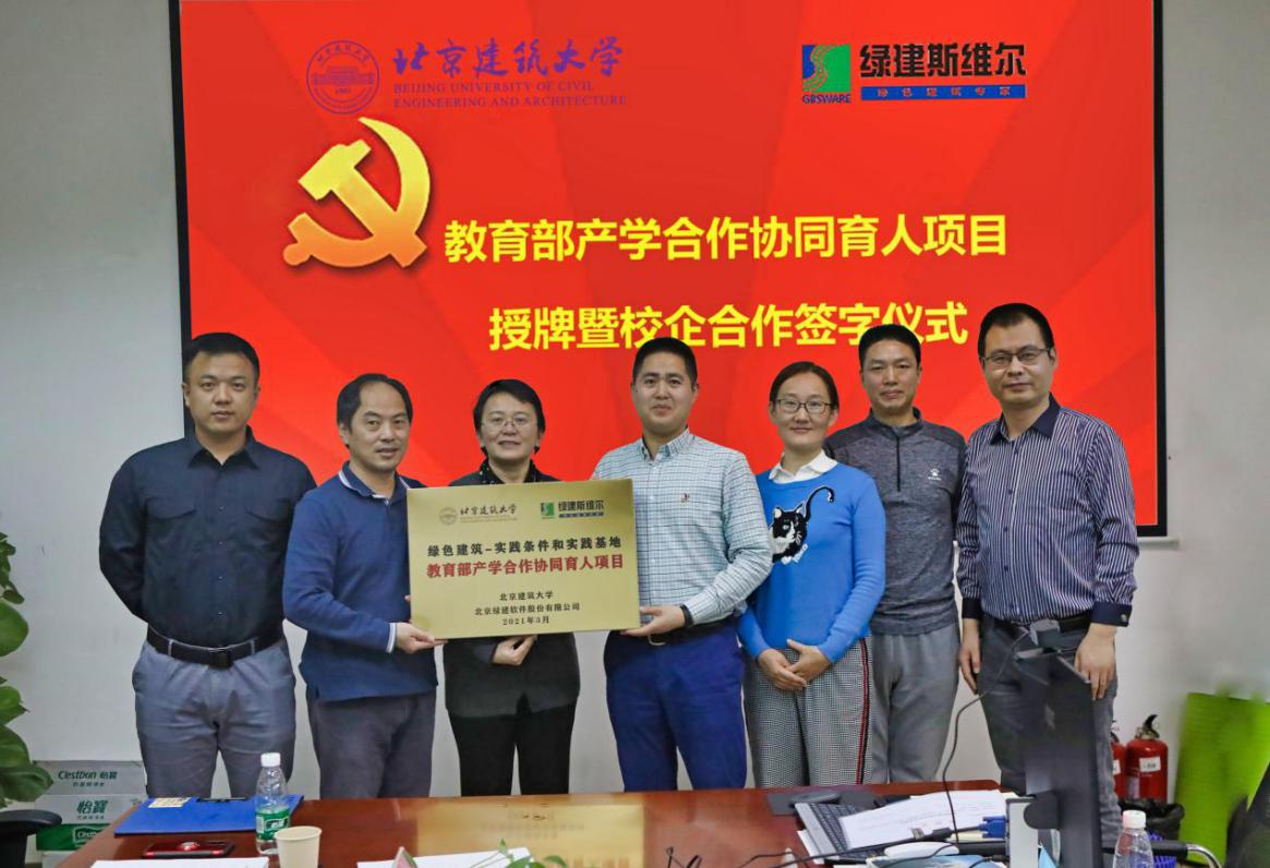 授牌及签约仪式由北京绿建软件股份有限公司副总经理陈成主持,参加会议的还有公司技术支持部经理苏小红女士、高校部负责人李朝阳先生。仪式上,李春青副经理首先向陈成副总经理介绍了公司和公司近年的发展概况、取得的成绩,并对北京绿建斯维尔软件股份有限公司多年来对公司及公司师生提供的软件和技术支持表示感谢,并随后向陈成副总经理赠送了十大正规买足球网站员工作品集等图书。陈成副总经理代表公司对李经理一行的到来表示热烈欢迎,随后介绍了企业发展历程、现阶段业务板块、绿建斯维尔软件的应用、绿建资格认证和证书考试、绿建团队培训、员工竞赛以及教育部产学合作协同育人项目的相关情况。最后,双方举行了教育部产学合作协同育人项目授牌暨校企合作签约仪式,李春青副经理代表十大正规买足球网站和陈成副总经理签订了更加深入的校企合作协议,并就共同建立绿色建筑实训基地、人才培养和输送、建立毕业生校外实习基地、合作科研及成果转化等合作内容达成共识。
