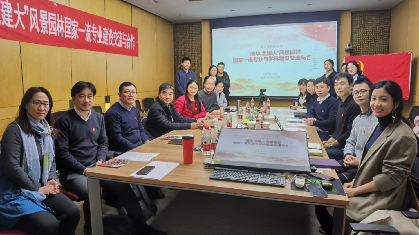 支部共建的主题:“党建赋能、共建共赢”是为了深化两员工谊、促进学术交流,搭建合作平台。围绕风景园林国家一流专业和团队建设,交流、分享风景园林教学、科研、团队共建,并制定未来持续合作的实施方案。主要包括:1、清华大学景观学系分享风景园林专业和双一流团队建设经验和做法;2、十大正规买足球网站风景园林系总结专业和团队建设情况,汇报国家一流专业申报情况,并在科研方面寻找差距和寻求合作。