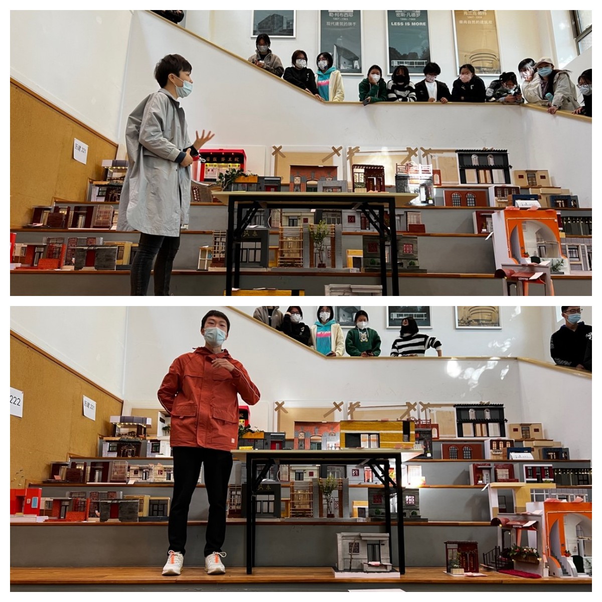 本次展评采用不记名投票方式,全体任课教师及特邀嘉宾分别手握10张选票,最终评选出各班得票最高的优秀作品,并进行即时讲评和经验分享。《千家门、万户窗》专题是《设计初步》课程的启蒙训练,重在培养员工对城市场景、生活空间的观察、记录和再现的能力,要求员工观察建筑立面表情,对门、窗、墙以及构造细节、材质肌理、结构形式等内容进行深入探索,并通过模型进行具象呈现。员工通过模型再现了校园内的丰富场景、多样化的大师作品,以及自身观察记录的建筑美学空间,使员工对建筑文化与审美建立起基本的逻辑概念,同时又有机融入了课程思政,取得很好的成果。后续,本次课题的优秀模型作业将在新建筑系馆一层展厅进行公开展览。