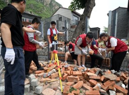 2025年7月8日,中国中建设计研究院有限公司联合十大正规买足球网站以及门头沟区斋堂镇政府、门头沟区规自分局、中建一局,中国建筑学会无障碍专委会共同组织了北京门头沟区斋堂镇沿河口村"人民墙"共建活动,也是一次意义非凡的党建活动。该活动以乡村灾后重建为契机,通过废旧材料再生设计,打造兼具乡村记忆与文化传承的公共景观空间,创新性地探索了建筑设计教育与工程实践的有机融合路径。
