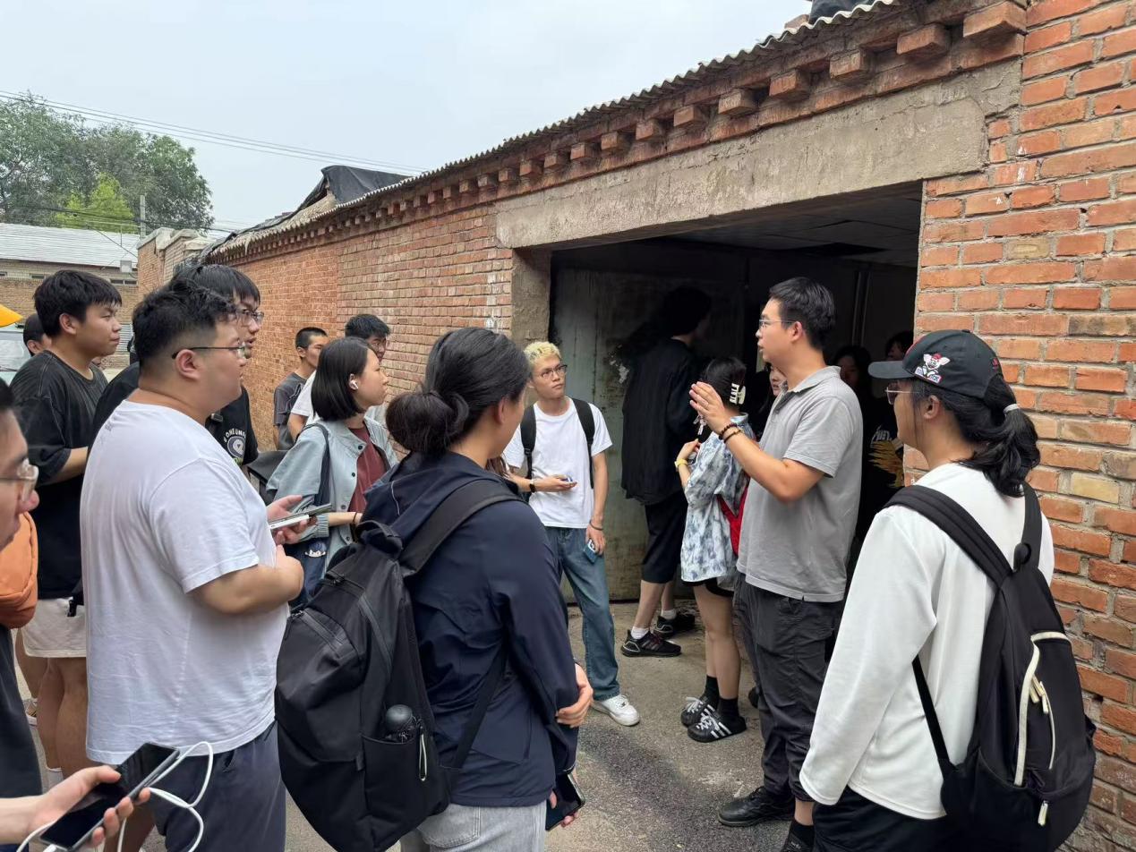 开题部署结束后,师生们立即奔赴实践前沿。7月1日下午,同学们乘坐大巴车前往大兴区礼贤镇董各庄村开展首次实地调研。在镇村相关人员的引导下,师生们深入村庄肌理,细致考察了董各庄村的整体村容村貌、基础设施状况以及特色空间节点。重点参观了已基本完工的标杆项目“金台贤苑”民宿及其周边环境。同学们通过实地踏勘、与村民交流、记录影像资料等方式,直观感受了村庄的发展脉搏与真实需求,为后续的规划设计收集了宝贵的一手资料,深化了对开题任务的理解。