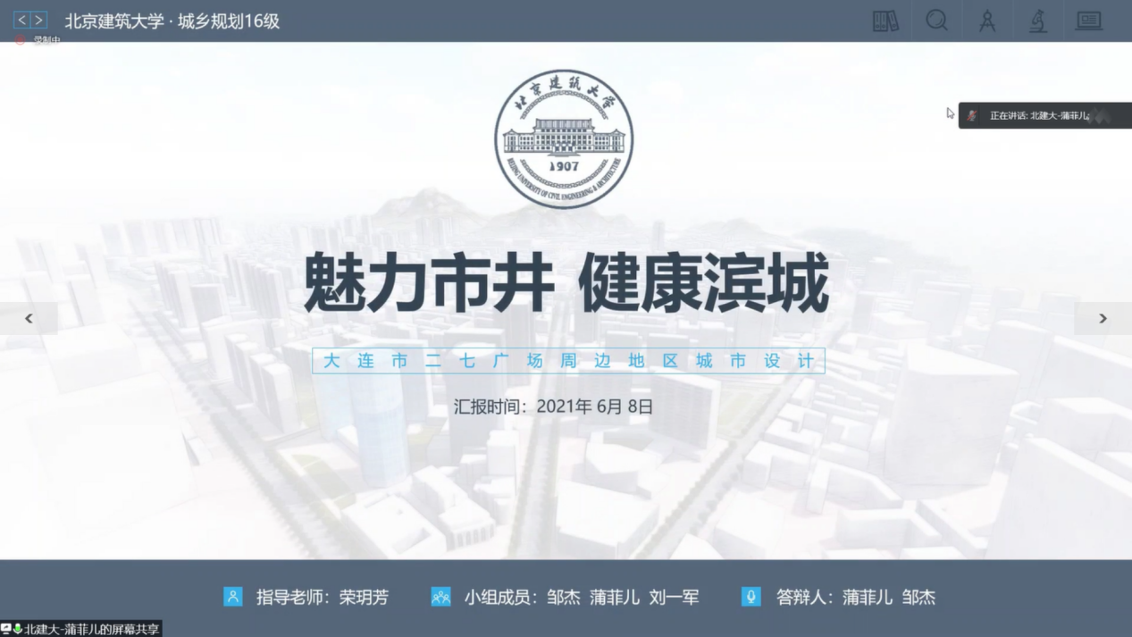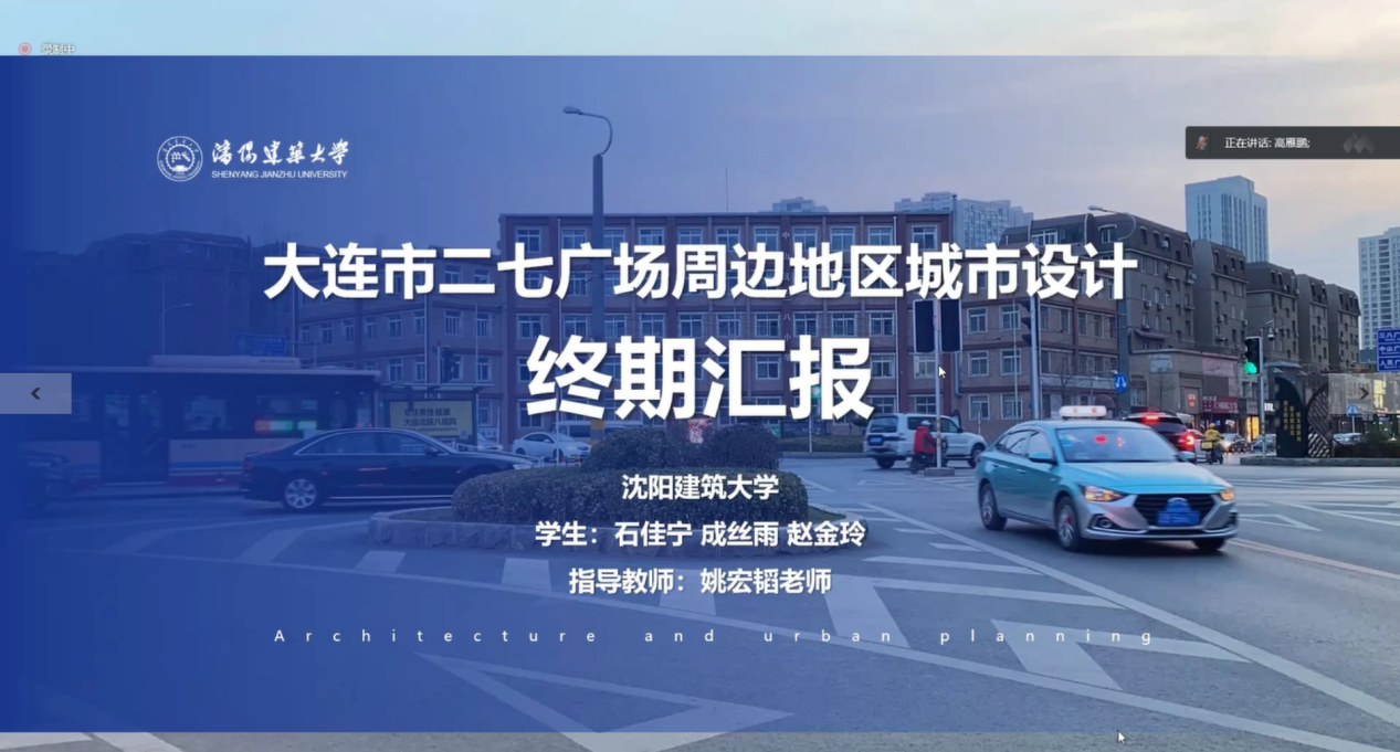6月8日,由十大正规买足球网站、沈阳建筑大学、东北大学、吉林建筑大学共同开展的2021年“提升与复兴—大连市二七广场周边地区城市设计”四校联合本科生毕业设计线上答辩会举行,共有3位特邀专家、8位指导教师、19名各校本科生参加了答辩。经过近5个小时的设计成果汇报与交流讨论,答辩会圆满成功。本次答辩由赵宏宇、高雁鹏两位老师主持。设计题目聚焦大连市二七广场周边地区,以提升城市发展质量、复兴老区城市活力为主要目标,深入挖掘老城特色资源,突出地方文化特色,通过城市更新重焕地区活力,创造高品质的生活空间。