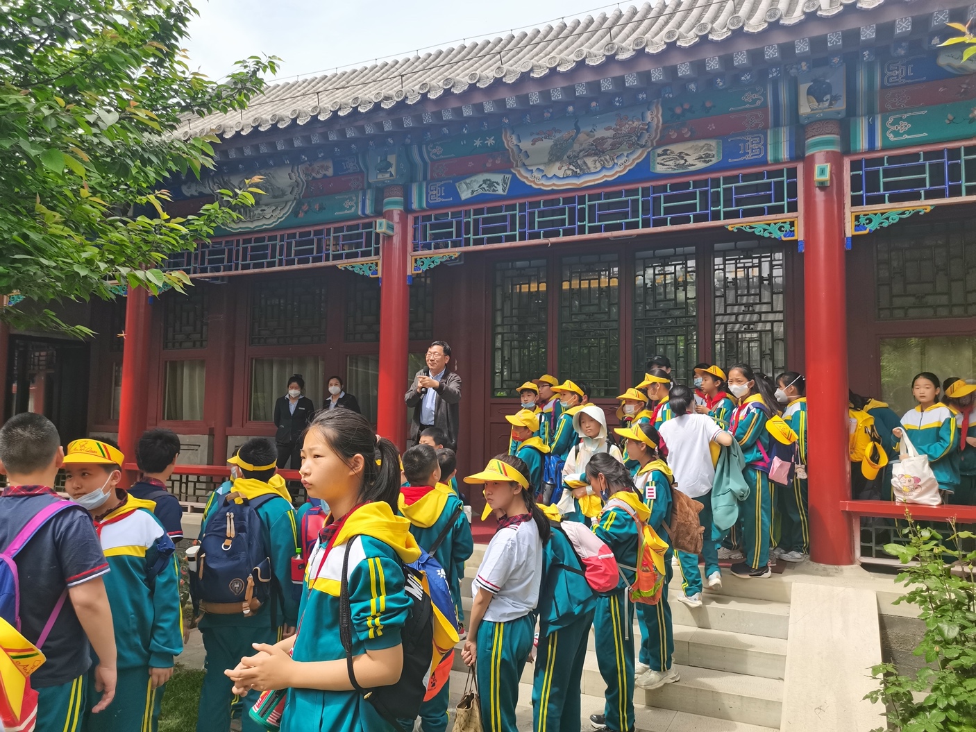 5月6日,历史建筑保护系陈雳教授在大兴校区带领到校研学来访的旧宫小学师生参观了四合院建筑,讲解了并讲解了有关四合院建筑知识,受到孩子们的欢迎。
