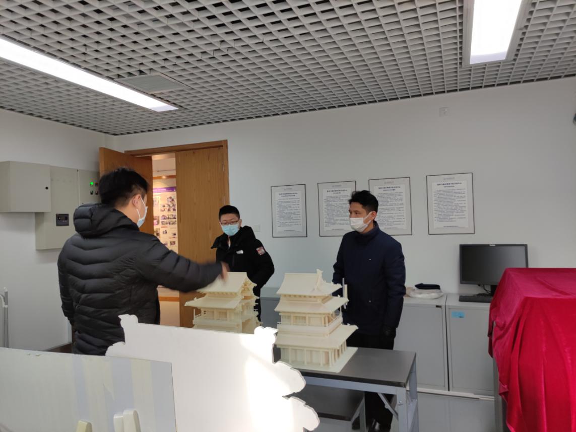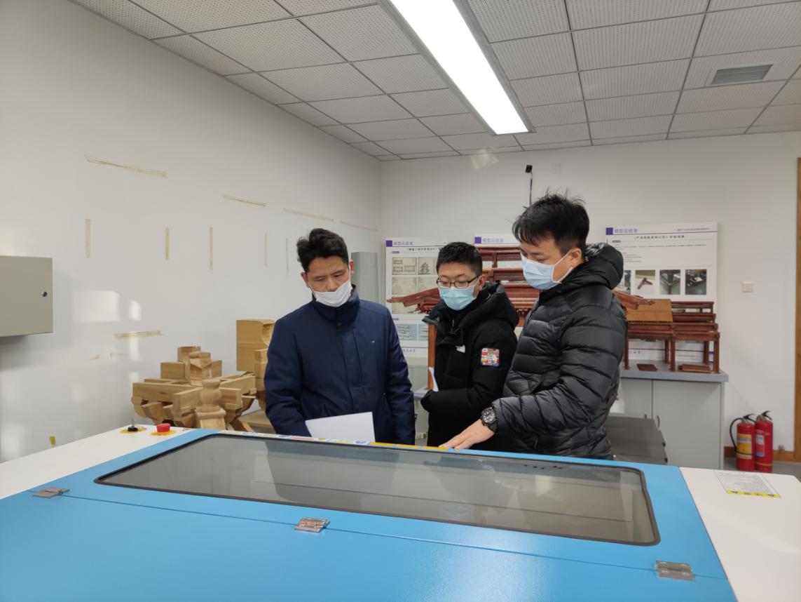 座谈会后,陈玉龙、刘品妍陪同焦驰宇副处长、赵子彦老师一起抽查了实验中心实验室,分别走访了精雕实验室、激光雕刻实验室、3D打印实验室、气候仓实验室、古建实验室等。,并提出了具体的实验室建设和安全运行意见。建设性的安全运行和科学管理的建议。