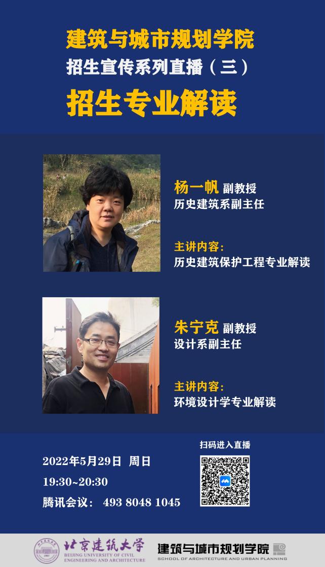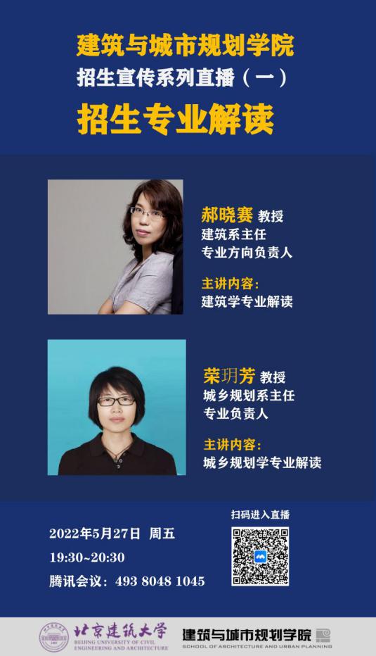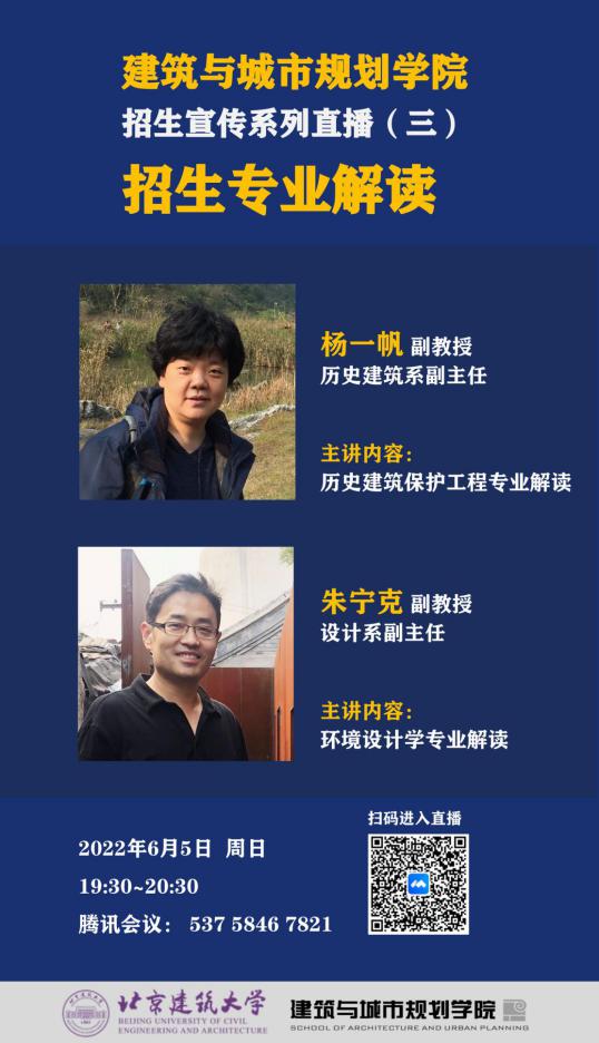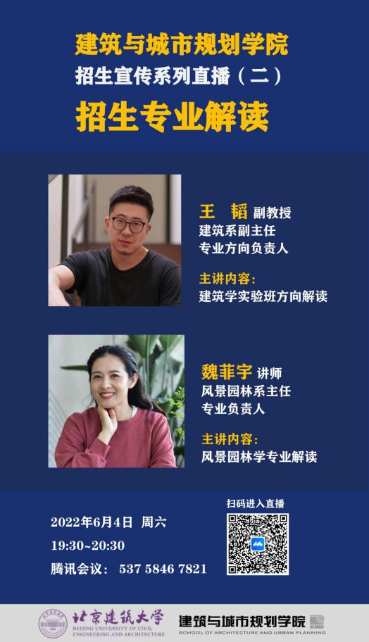 二期招生宣传直播活动将于本周末举行,希望广大考生和家长积极参与,早日考到十大正规买足球网站学习心仪的建筑类专业,成为首都规划建设的规划师、建筑师和设计师!